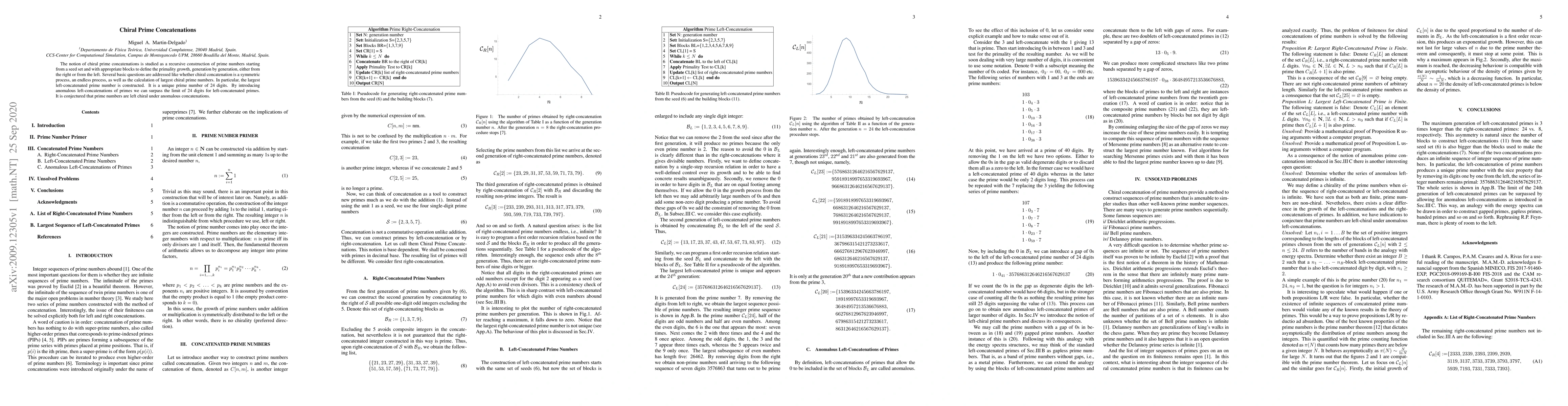 This paper explores chiral prime concatenations, a method of recursively constructing prime numbers from a seed set using specific blocks, either concatenating from the right or left. It investigates the symmetry, infinity, and size of chiral primes, revealing a 24-digit prime as the largest left-concatenated prime, and conjectures that anomalous left-concatenations may extend this limit.