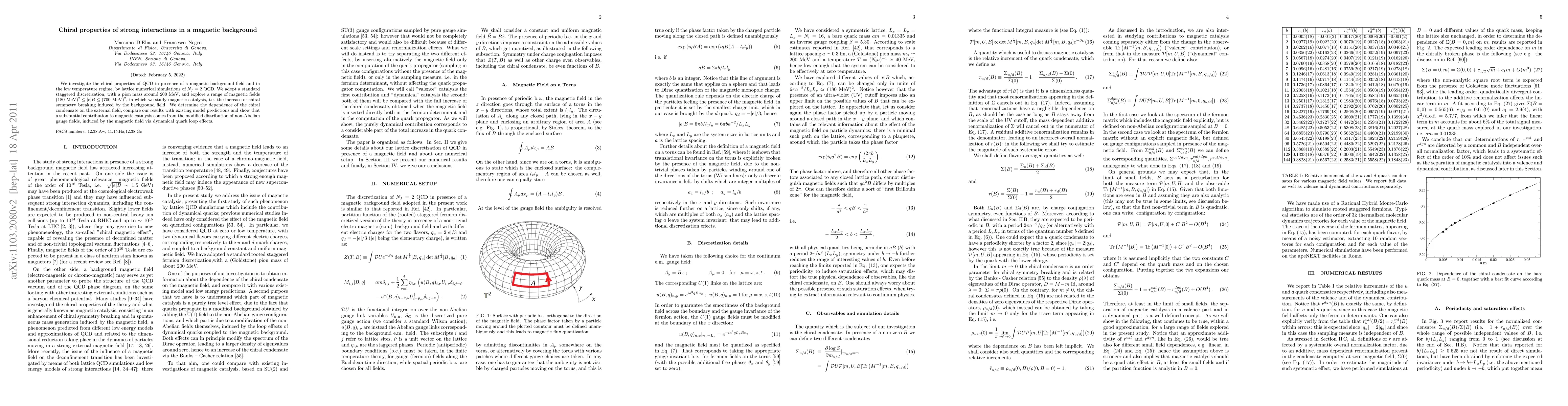 We investigate the chiral properties of QCD in presence of a magnetic background field and in the low temperature regime, by lattice numerical simulations of N_f = 2 QCD. We adopt a standard staggered discretization, with a pion mass around 200 MeV, and explore a range of magnetic fields (180 MeV)^2 \leq|e|B \leq (700 MeV)^2, in which we study magnetic catalysis, i.e. the increase of chiral symmetry breaking induced by the background field. We determine the dependence of the chiral condensate on the external field, compare our results with existing model predictions and show that a substantial contribution to magnetic catalysis comes from the modified distribution of non-Abelian gauge fields, induced by the magnetic field via dynamical quark loop effects.