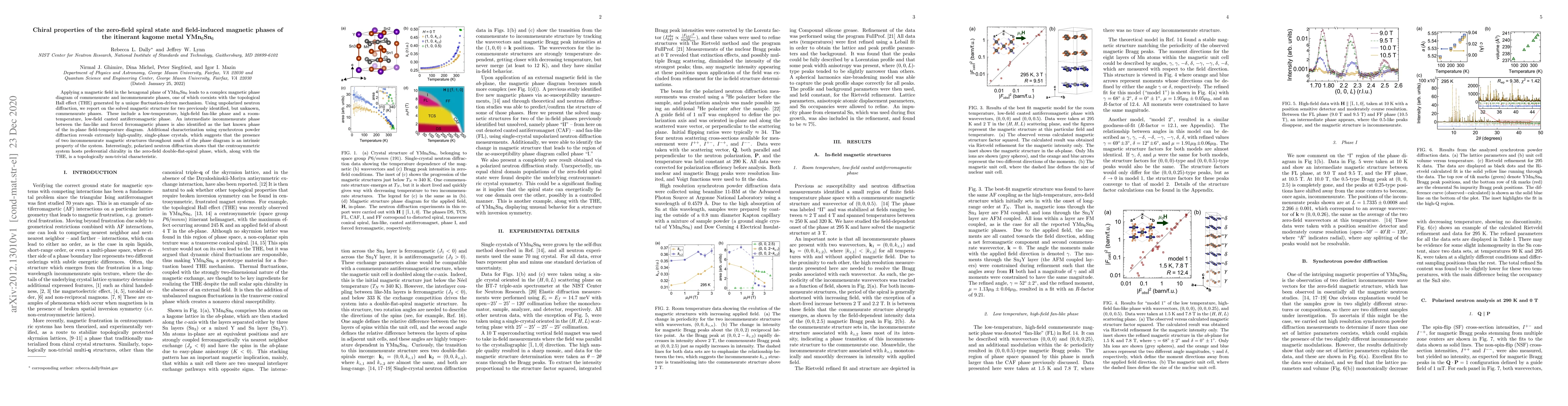 Applying a magnetic field in the hexagonal plane of YMn$_6$Sn$_6$ leads to a complex magnetic phase diagram of commensurate and incommensurate phases, one of which coexists with the topological Hall effect (THE) generated by a unique fluctuation-driven mechanism. Using unpolarized neutron diffraction, we report on the solved magnetic structure for two previously identified, but unknown, commensurate phases. These include a low-temperature, high-field fan-like phase and a room-temperature, low-field canted antiferromagnetic phase. An intermediate incommensurate phase between the fan-like and forced ferromagnetic phases is also identified as the last known phase of the in-plane field-temperature diagram. Additional characterization using synchrotron powder diffraction reveals extremely high-quality, single-phase crystals, which suggests that the presence of two incommensurate magnetic structures throughout much of the phase diagram is an intrinsic property of the system. Interestingly, polarized neutron diffraction shows that the centrosymmetric system hosts preferential chirality in the zero-field double-flat-spiral phase, which, along with the THE, is a topologically non-trivial characteristic.