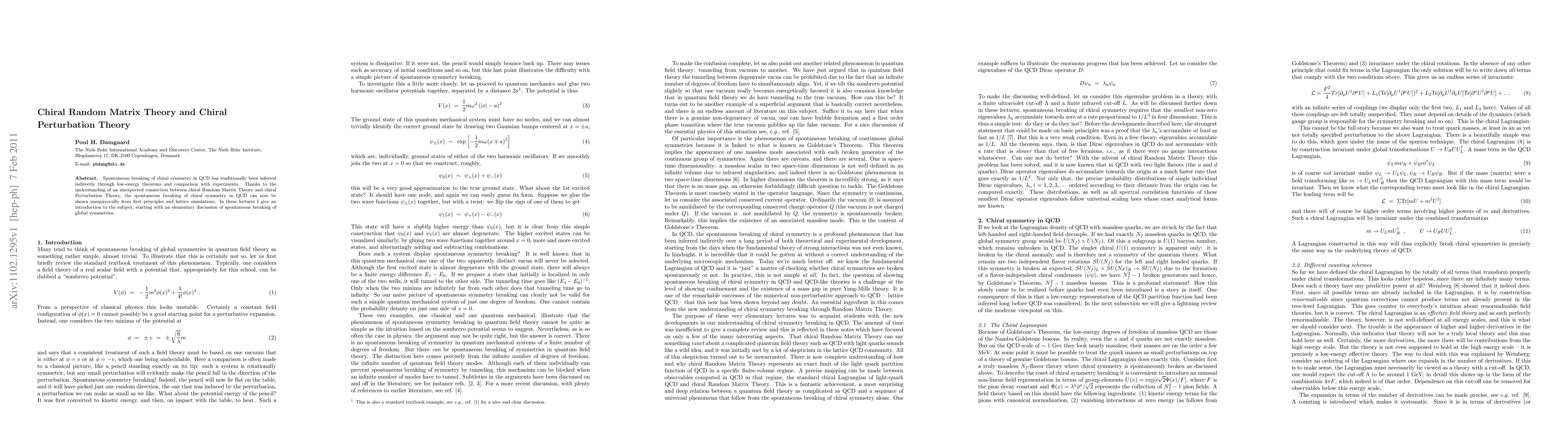 This paper explores the unexpected link between chiral Random Matrix Theory and chiral Perturbation Theory to demonstrate the spontaneous breaking of chiral symmetry in QCD directly from first principles and lattice simulations, providing a new method to understand this phenomenon. The lectures introduce the concept starting with the basics of spontaneous symmetry breaking.