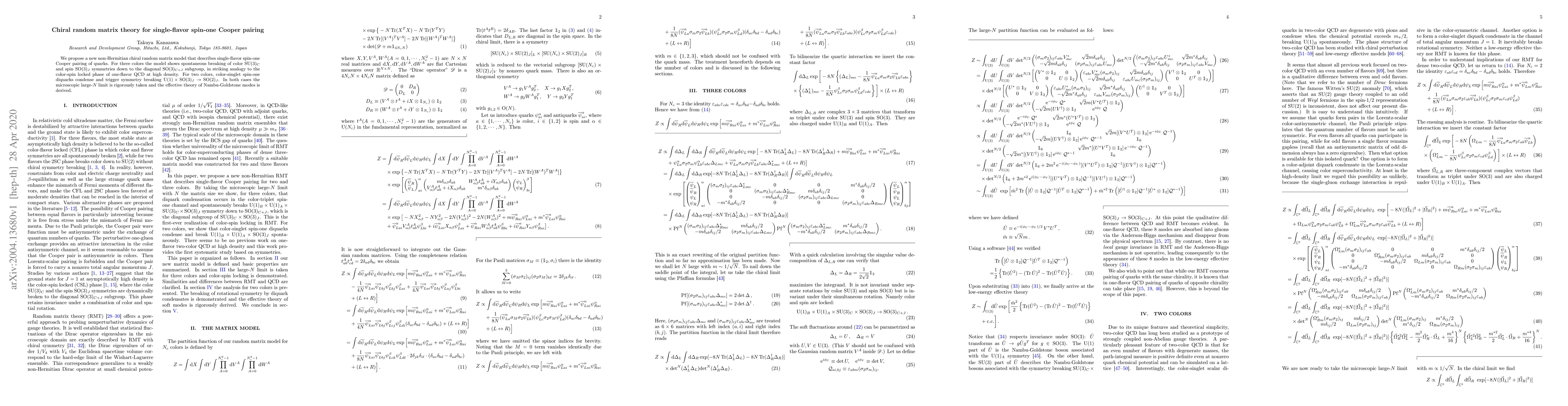 This paper proposes a new non-Hermitian chiral random matrix model to describe single-flavor spin-one Cooper pairing in quarks, showing spontaneous symmetry breaking in both three and two-color scenarios, analogous to high-density one-flavor QCD, and rigorously derives the effective theory of Nambu-Goldstone modes in the large-$N$ limit.