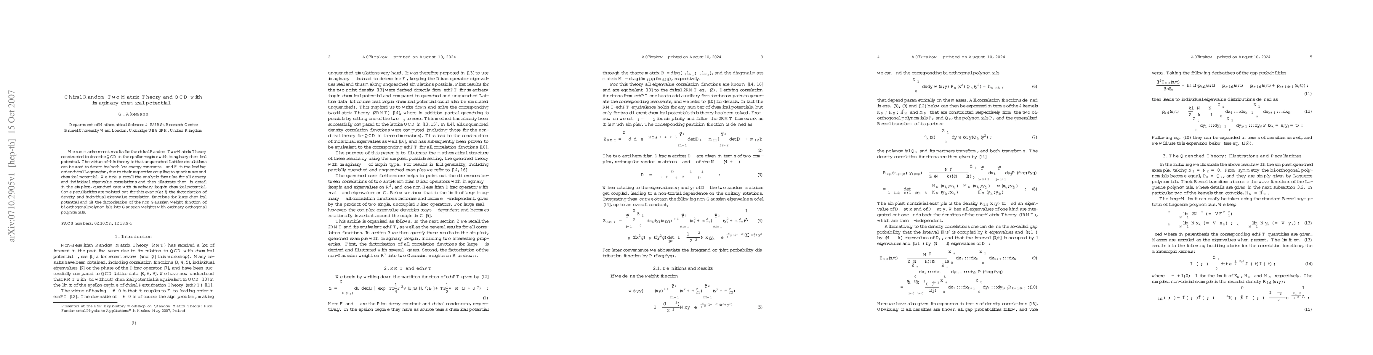 We summarise recent results for the chiral Random Two-Matrix Theory constructed to describe QCD in the epsilon-regime with imaginary chemical potential. The virtue of this theory is that unquenched Lattice simulations can be used to determine both low energy constants Sigma and F in the leading order chiral Lagrangian, due to their respective coupling to quark mass and chemical potential. We briefly recall the analytic formulas for all density and individual eigenvalue correlations and then illustrate them in detail in the simplest, quenched case with imaginary isospin chemical potential. Some peculiarities are pointed out for this example: i) the factorisation of density and individual eigenvalue correlation functions for large chemical potential and ii) the factorisation of the non-Gaussian weight function of bi-orthogonal polynomials into Gaussian weights with ordinary orthogonal polynomials.