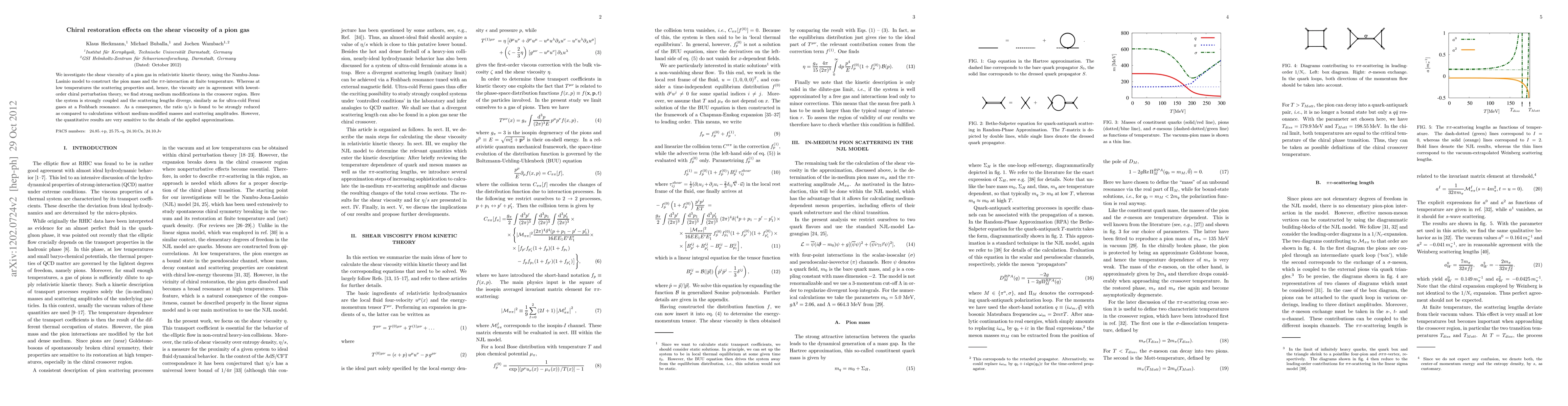 The paper presents a detailed analysis of shear viscosity in a pion gas using relativistic kinetic theory, incorporating medium modifications from the NJL model, and identifies the importance of momentum-dependent scattering amplitudes in accurately describing the system's behavior near the chiral crossover.