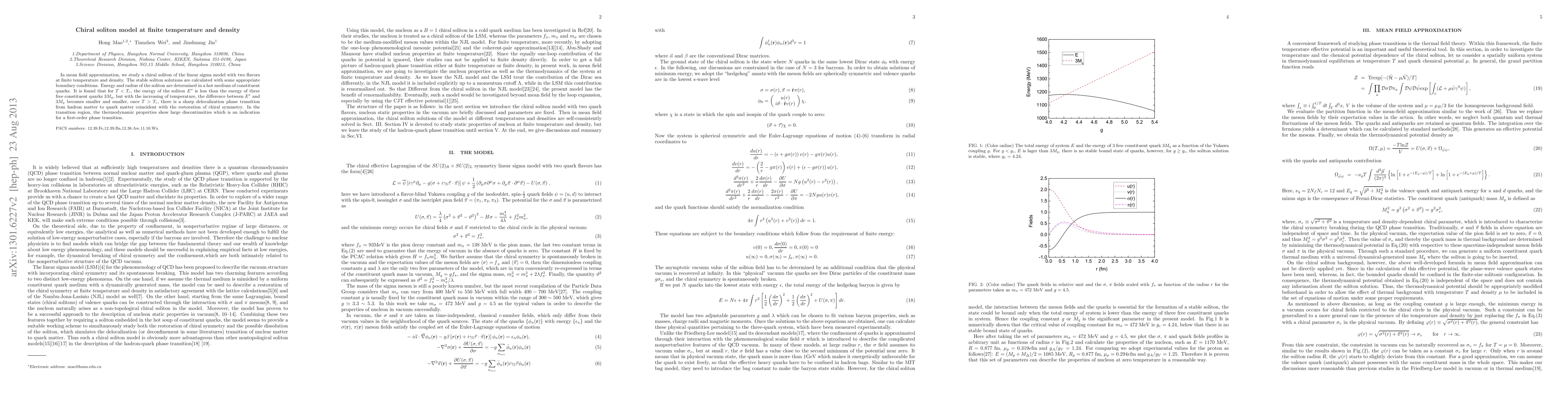 This study investigates chiral solitons in the linear sigma model at finite temperature and density, revealing that below a critical temperature $T_c$, solitons have lower energy than three constituent quarks. Above $T_c$, a sharp phase transition occurs, indicating a shift from hadron to quark matter with significant thermodynamic discontinuities.