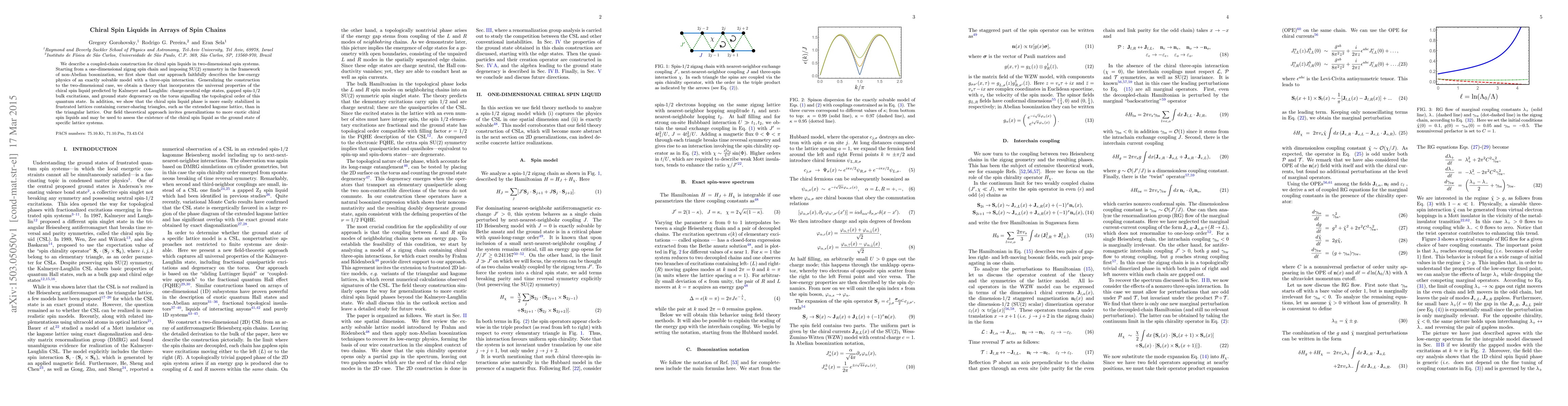 This paper constructs chiral spin liquids in two-dimensional spin systems from coupled one-dimensional zigzag spin chains, demonstrating the approach's fidelity through a three-spin interaction model. It generalizes to predict universal properties of chiral spin liquids, including topological order, and finds stabilization in frustrated lattices like the extended kagome.