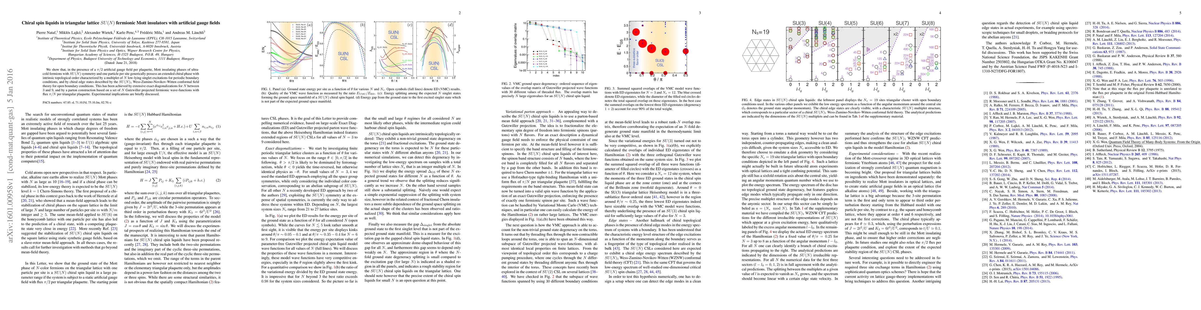 The research demonstrates that $SU(N)$ fermionic Mott insulators on triangular lattices, with a $\pi/2$ artificial gauge field, exhibit chiral spin liquid phases with topological order, characterized by $N$ low-lying singlet excitations and chiral edge states. These findings are supported by exact diagonalizations and parton constructions for $N$ values between 3 and 9.