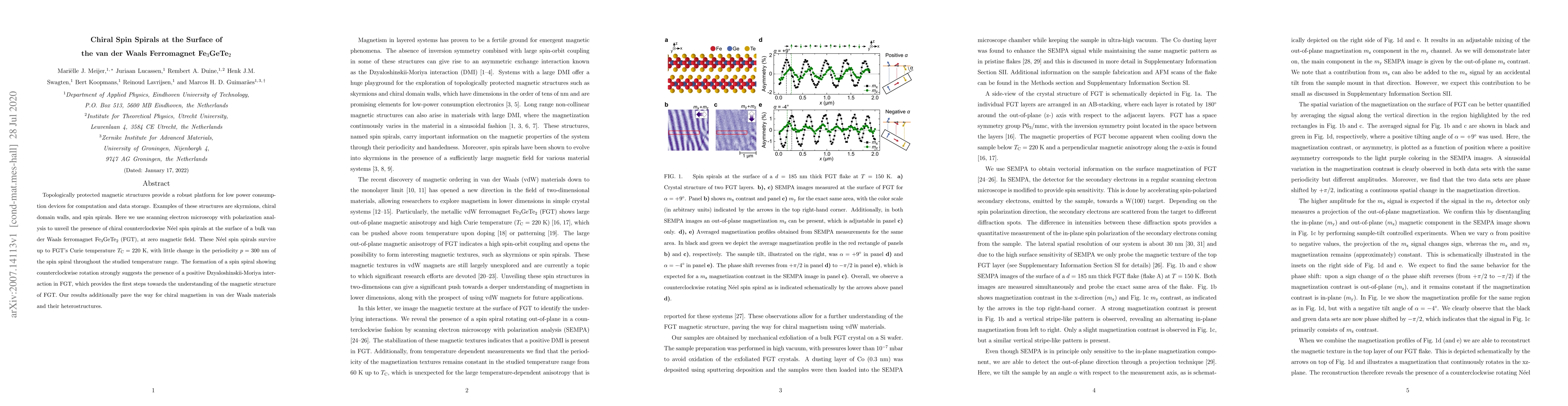 This study reveals chiral counterclockwise N\'eel spin spirals on the surface of Fe$_3$GeTe$_2$ at zero magnetic field, suggesting a positive Dzyaloshinskii-Moriya interaction and paving the way for low power magnetic devices using van der Waals materials. The spin spirals maintain their structure up to the Curie temperature of 220 K.