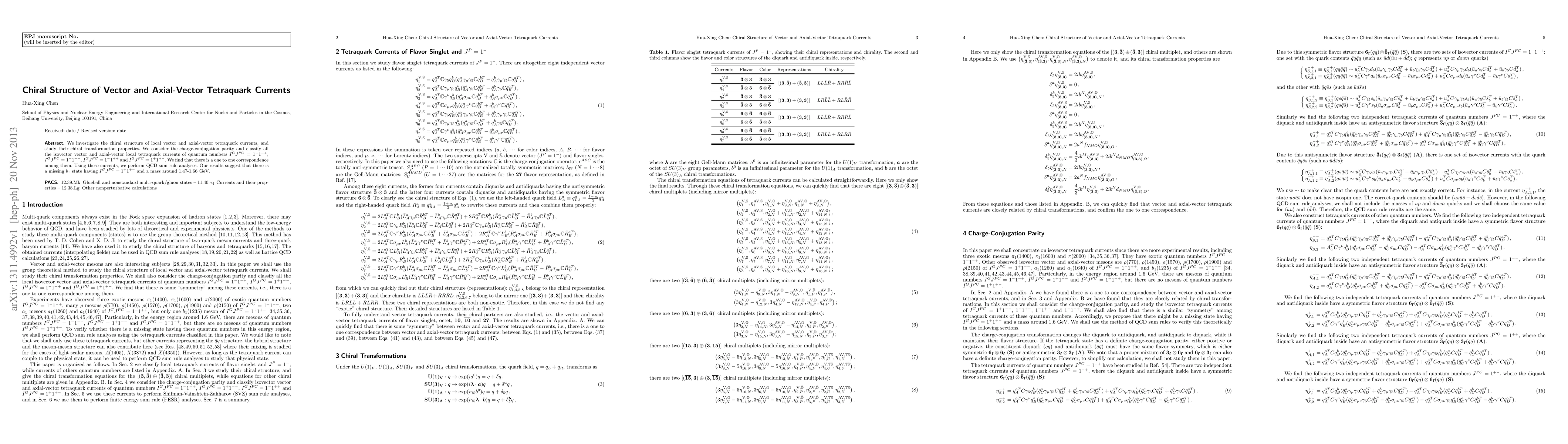 This paper investigates the chiral structure and transformation properties of local vector and axial-vector tetraquark currents, classifying them based on quantum numbers. The study reveals a one-to-one correspondence among these currents and suggests the existence of a missing b1 state with specific quantum numbers and mass range.