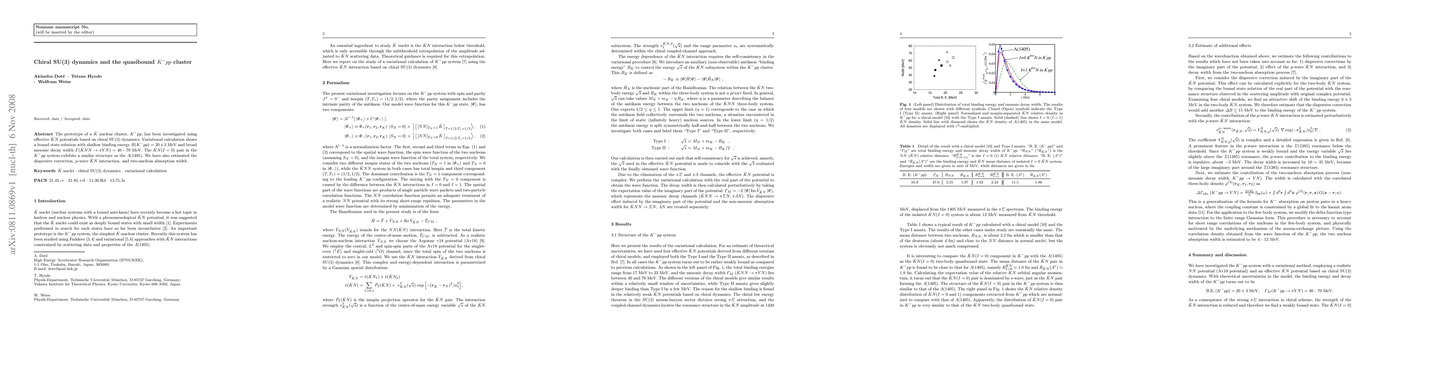 This paper explores the K^-pp cluster using chiral SU(3) dynamics, revealing a quasibound state with a binding energy of 20 ± 3 MeV and a broad decay width of 40-70 MeV. The study also compares the KbarN(I=0) pair structure to the Λ(1405) resonance.
