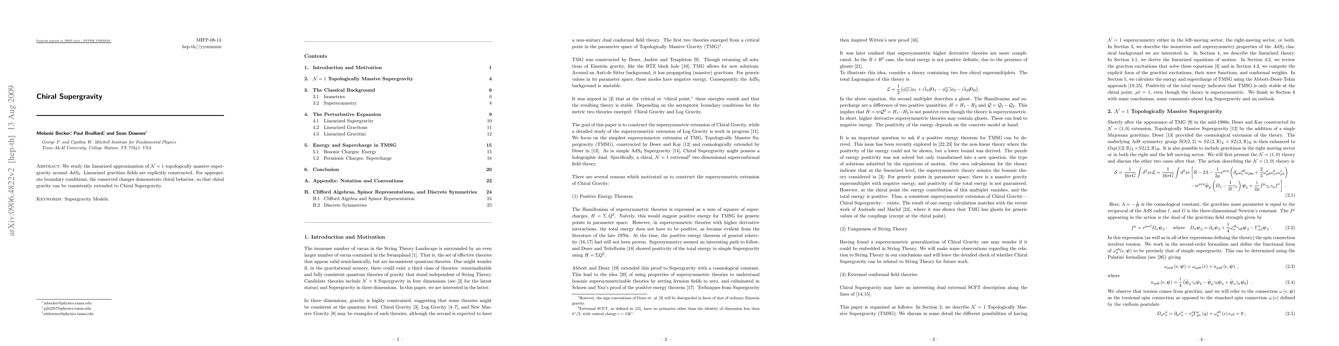 Summary: This paper investigates the linearized N=1 topologically massive supergravity in AdS3 space, constructing gravitino fields and demonstrating that under specific boundary conditions, the conserved charges exhibit chiral behavior, allowing for a consistent extension of chiral gravity to chiral supergravity.