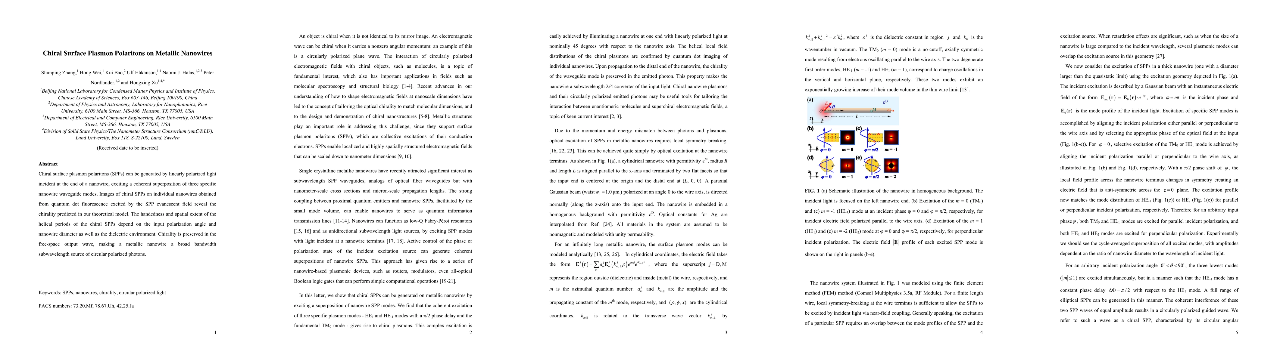 This paper demonstrates the generation of chiral surface plasmon polaritons (SPPs) on metallic nanowires using linearly polarized light, which excites specific waveguide modes. The chirality of these SPPs, confirmed through quantum dot fluorescence imaging, depends on the polarization angle, nanowire diameter, and surrounding dielectric environment, and is preserved in the emitted circularly polarized photons.