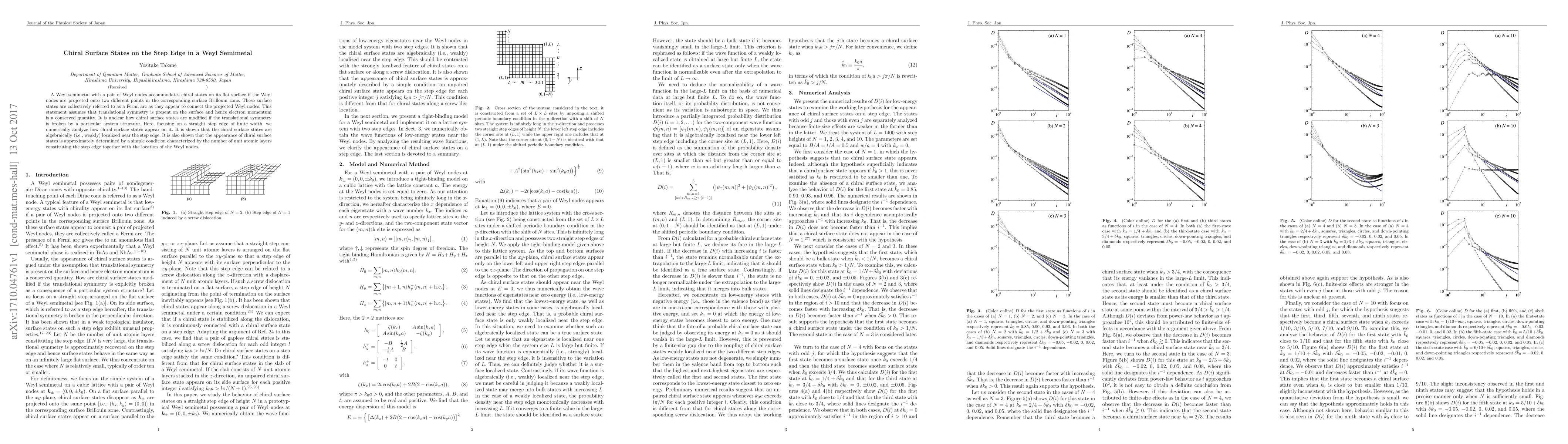 Researchers studied how chiral surface states form on a step edge in a Weyl semimetal, finding they appear weakly localized near the edge due to the system structure. The appearance of these states is determined by the number of atomic layers at the edge and the location of the Weyl nodes.