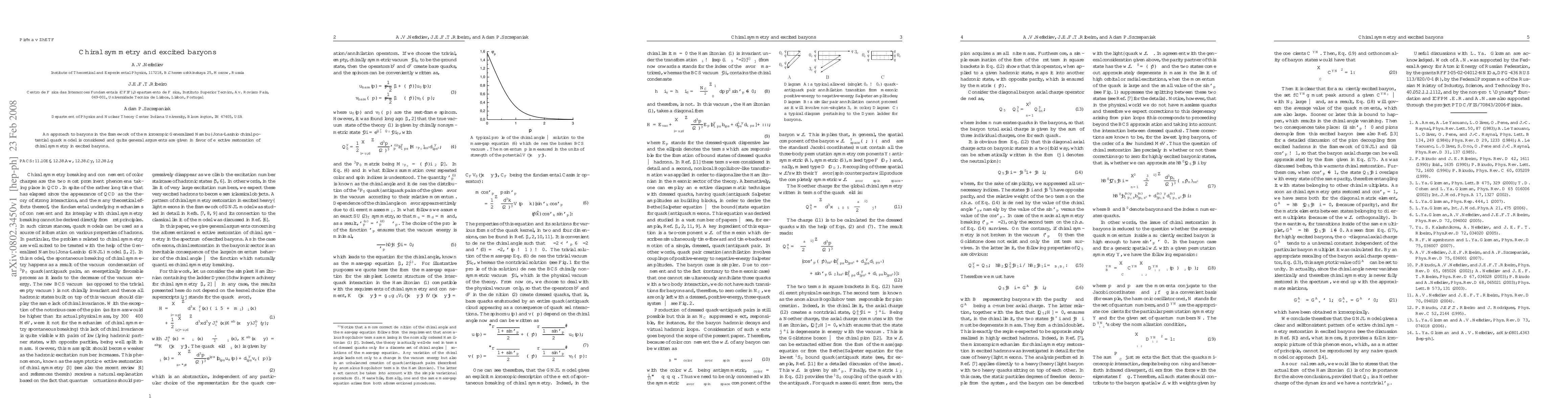 Summary: This paper explores baryons using the Generalized Nambu-Jona-Lasinio chiral potential quark model, arguing for the effective restoration of chiral symmetry in excited baryons, suggesting a new perspective on their internal dynamics.