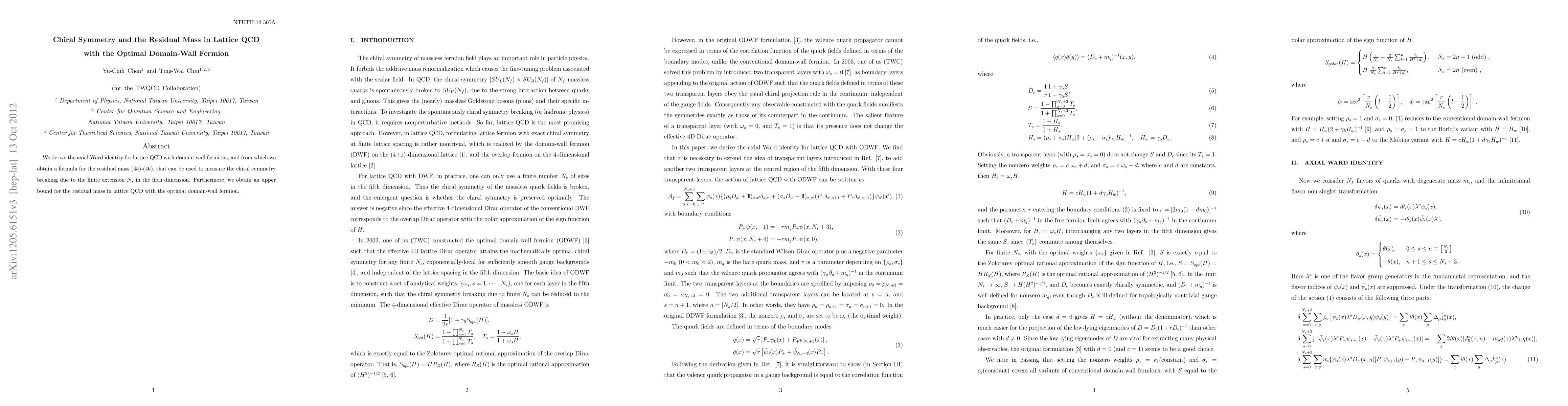 We derive the axial Ward identity for lattice QCD with domain-wall fermions, and from which we obtain a formula for the residual mass (45)-(46), that can be used to measure the chiral symmetry breaking due to the finite extension Ns in the fifth dimension. Furthermore, we obtain an upper bound for the residual mass in lattice QCD with the optimal domain-wall fermion.