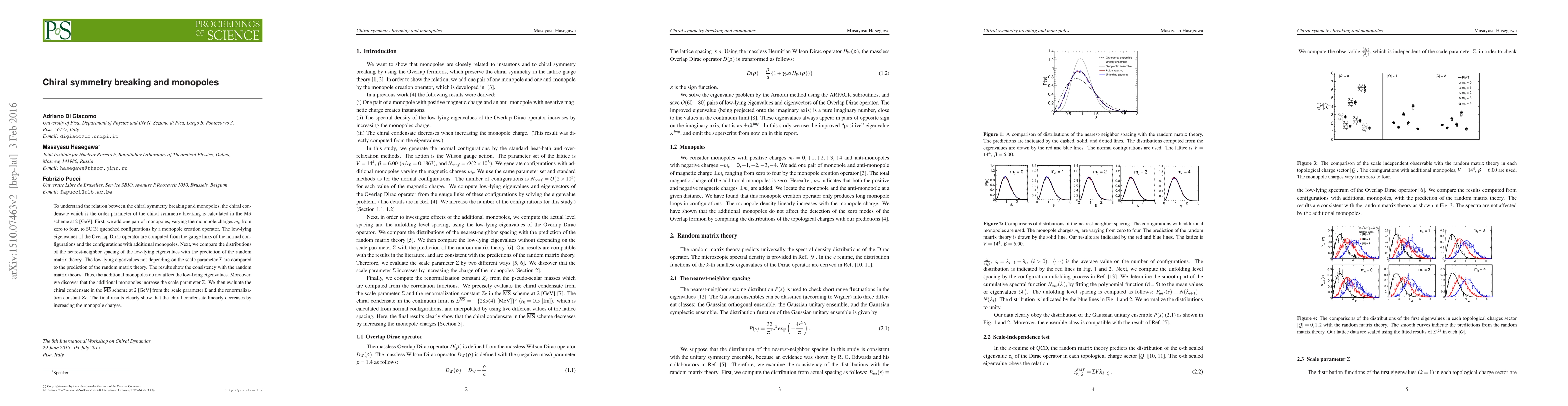 This study investigates the impact of monopoles on chiral symmetry breaking, finding that additional monopoles increase the scale parameter Σ but do not affect low-lying eigenvalues of the Overlap Dirac operator. The chiral condensate decreases linearly with increasing monopole charges, indicating a relationship between monopoles and chiral symmetry breaking.