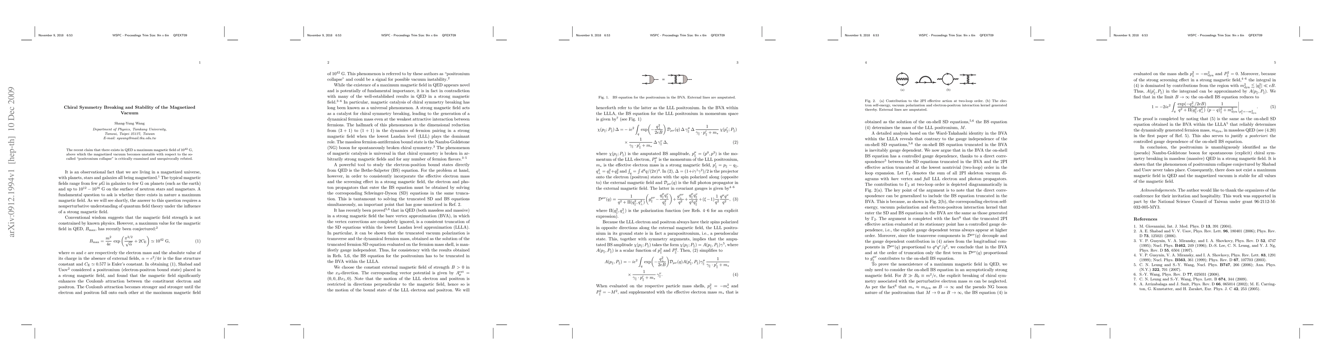 This paper refutes the claim that the magnetized vacuum in QED becomes unstable above 10^42 G, arguing instead that chiral symmetry breaking does not lead to "positronium collapse" and thus the vacuum remains stable at higher magnetic fields.