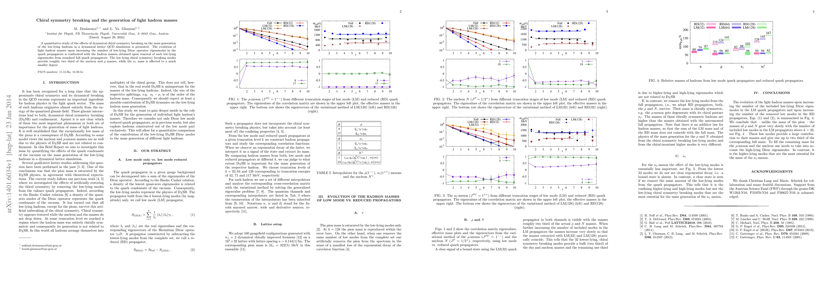 A quantitative study of the effects of dynamical chiral symmetry breaking on the mass generation of the low-lying hadrons in a dynamical lattice QCD simulation is presented. The evolution of light hadron masses upon increasing the number of low-lying Dirac operator eigenmodes in the quark propagators is confronted with the hadron masses obtained upon removal of such low-lying eigenmodes from standard full quark propagators. The low-lying chiral symmetry breaking modes provide roughly two third of the nucleon and $\rho$ masses, while the $a_1$ mass is affected to a much smaller degree.