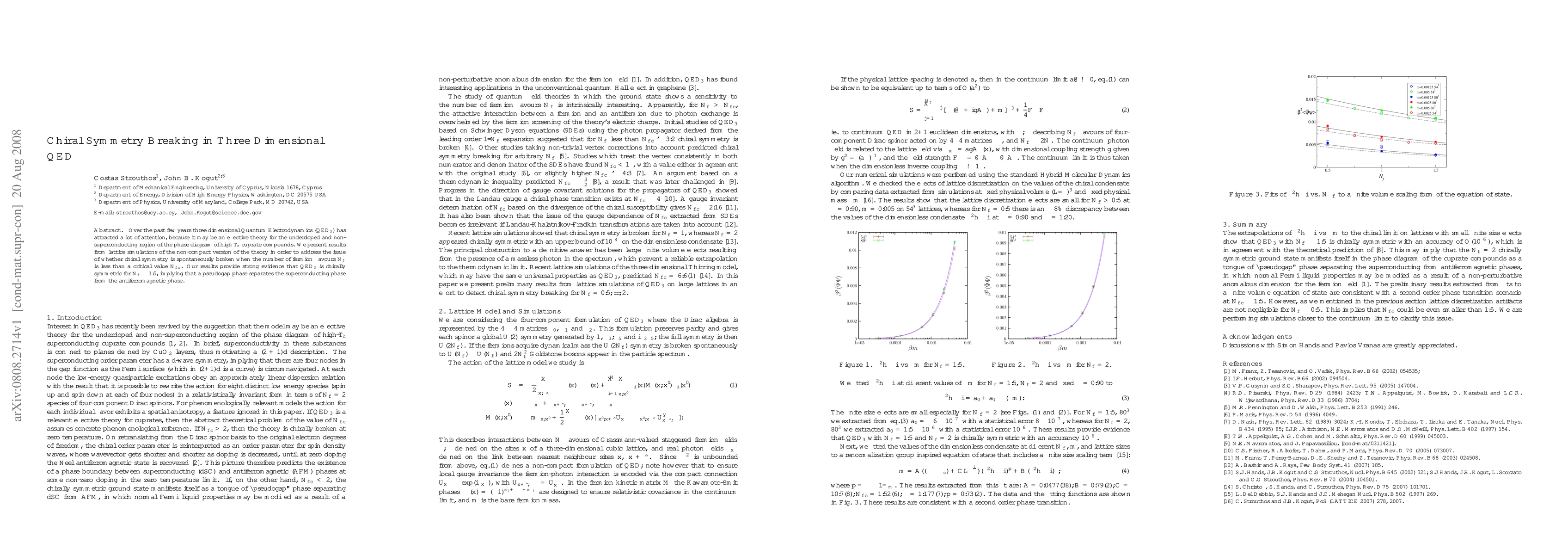 This research investigates chiral symmetry breaking in three-dimensional Quantum Electrodynamics (QED$_3$) through lattice simulations. The study finds strong evidence that chiral symmetry is preserved for $N_f \geq 1.5$, indicating a pseudogap phase exists between the superconducting and antiferromagnetic phases.