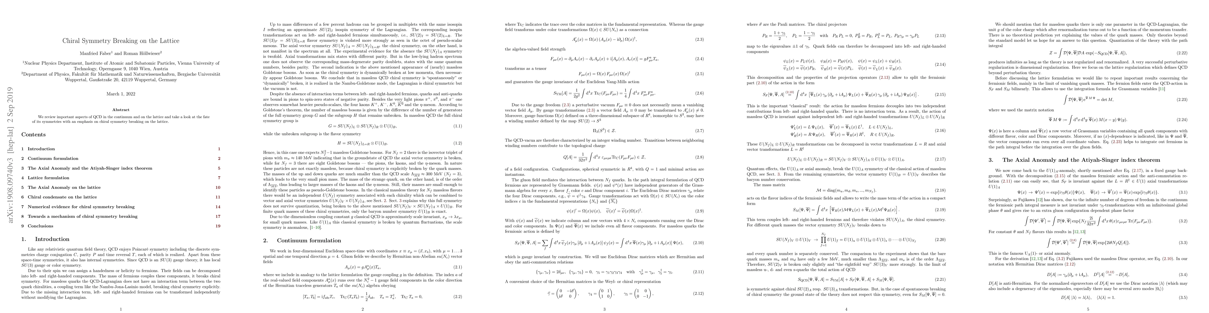 Summary: This paper examines the implications of Quantum Chromodynamics (QCD) both in the continuum and on a lattice, focusing on how chiral symmetry is affected and broken when transitioning from continuous to discretized space.