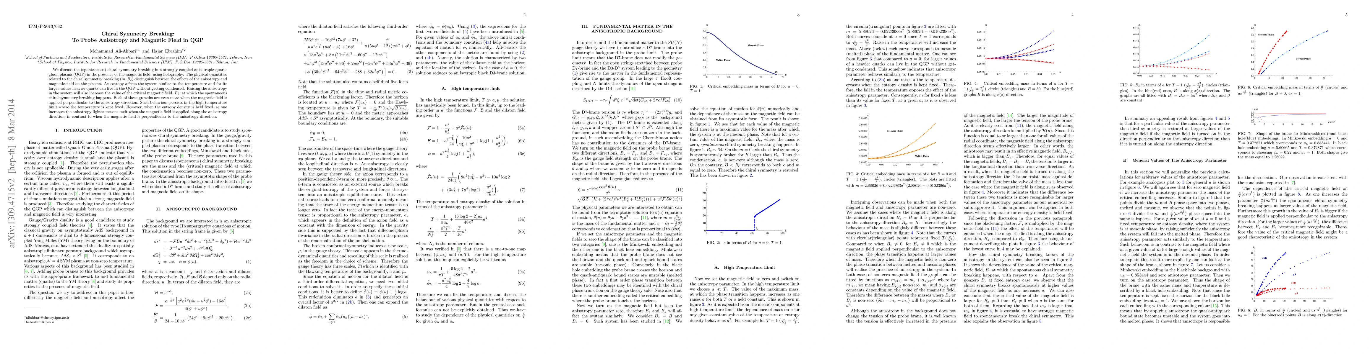 This paper investigates chiral symmetry breaking in anisotropic quark-gluon plasma (QGP) under a magnetic field using holography. It finds that increased anisotropy raises the critical magnetic field for symmetry breaking and that the effect is more pronounced when the magnetic field is perpendicular to the anisotropy direction.