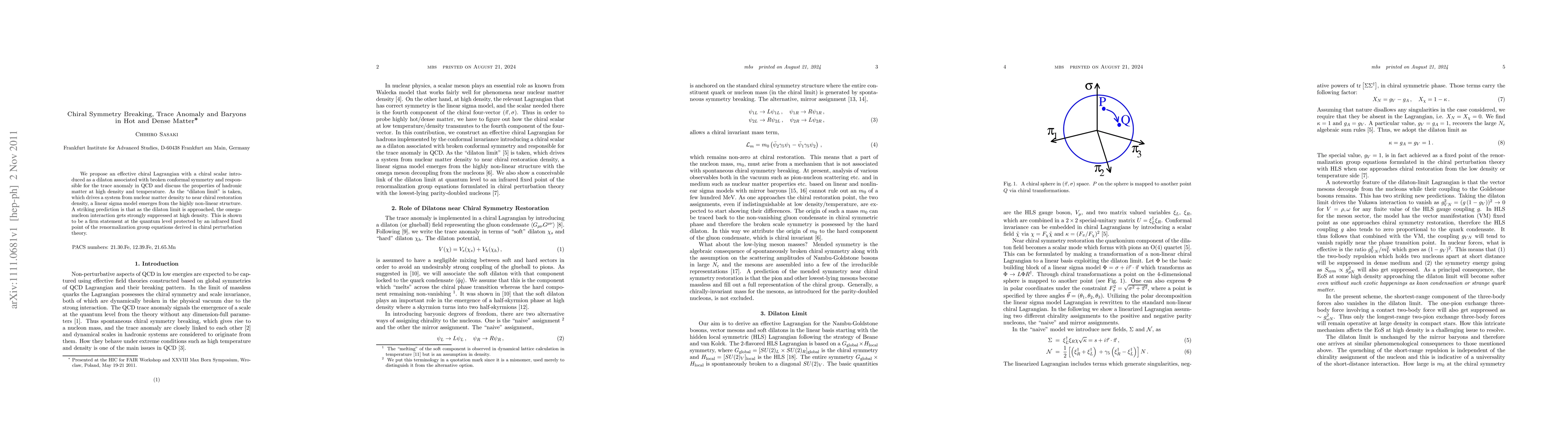 We propose an effective chiral Lagrangian with a chiral scalar introduced as a dilaton associated with broken conformal symmetry and responsible for the trace anomaly in QCD and discuss the properties of hadronic matter at high density and temperature. As the "dilaton limit" is taken, which drives a system from nuclear matter density to near chiral restoration density, a linear sigma model emerges from the highly non-linear structure. A striking prediction is that as the dilaton limit is approached, the omega-nucleon interaction gets strongly suppressed at high density. This is shown to be a firm statement at the quantum level protected by an infrared fixed point of the renormalization group equations derived in chiral perturbation theory.