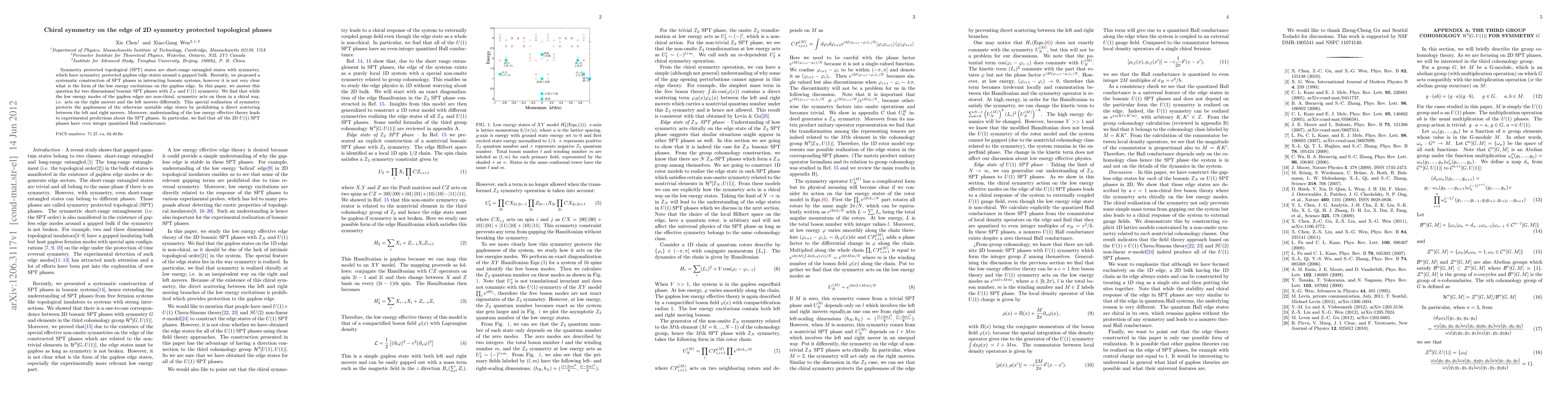 This paper investigates the low-energy excitations on the edge of 2D symmetry protected topological (SPT) phases, finding that while the edge states are non-chiral, they exhibit chiral symmetry protection. The study reveals that symmetry acts differently on right and left movers, thereby protecting the gapless edge states.