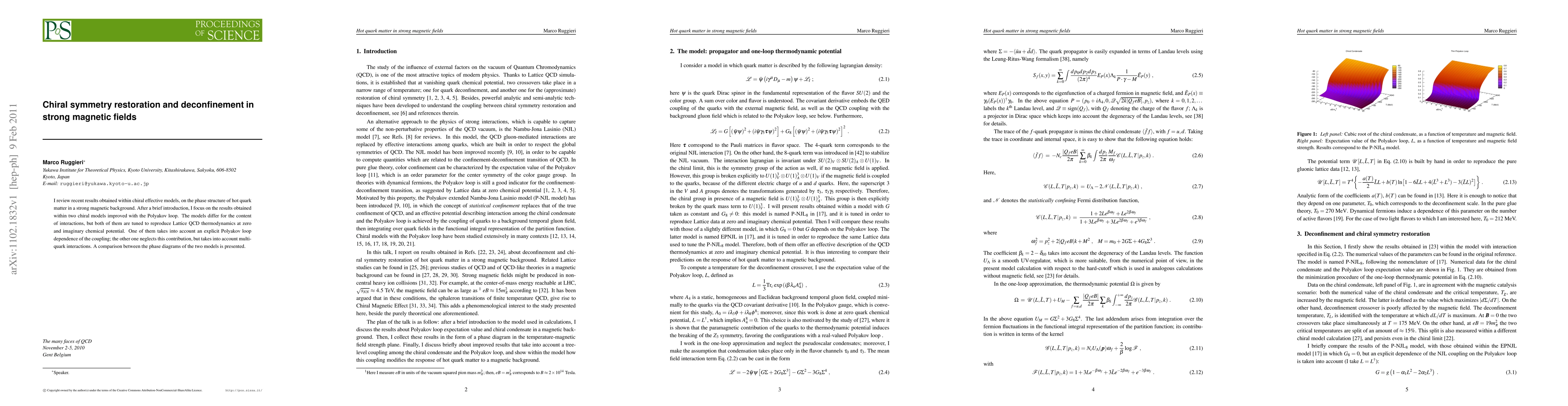 The paper presents a detailed analysis of chiral symmetry restoration and deconfinement in strong magnetic fields using two chiral models improved with the Polyakov loop, comparing their phase diagrams and critical temperatures.