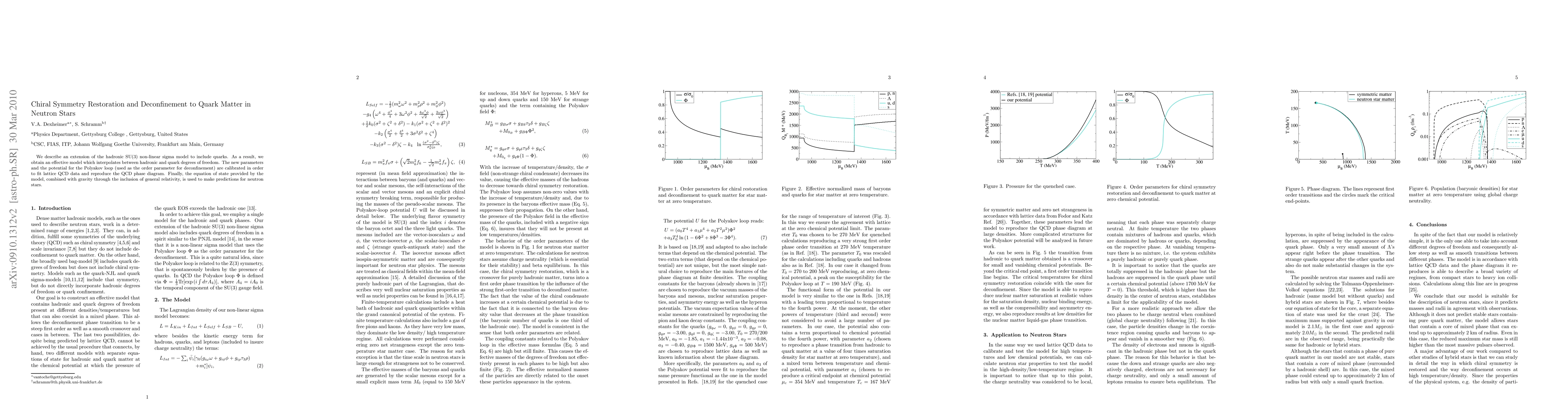 We describe an extension of the hadronic SU(3) non-linear sigma model to include quarks. As a result, we obtain an effective model which interpolates between hadronic and quark degrees of freedom. The new parameters and the potential for the Polyakov loop (used as the order parameter for deconfinement) are calibrated in order to fit lattice QCD data and reproduce the QCD phase diagram. Finally, the equation of state provided by the model, combined with gravity through the inclusion of general relativity, is used to make predictions for neutron stars.