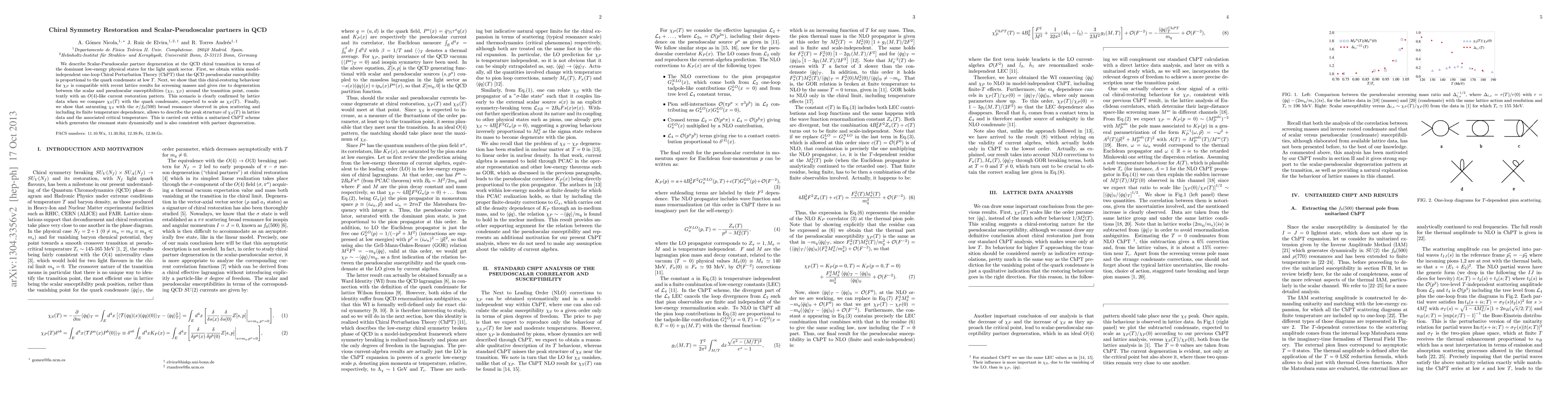This paper investigates the chiral symmetry restoration and the degeneration of scalar and pseudoscalar susceptibilities in QCD, demonstrating that the pseudoscalar susceptibility is proportional to the quark condensate at low temperatures. It confirms the O(4)-like current restoration pattern and the critical temperature using lattice data and a unitarized Chiral Perturbation Theory scheme.