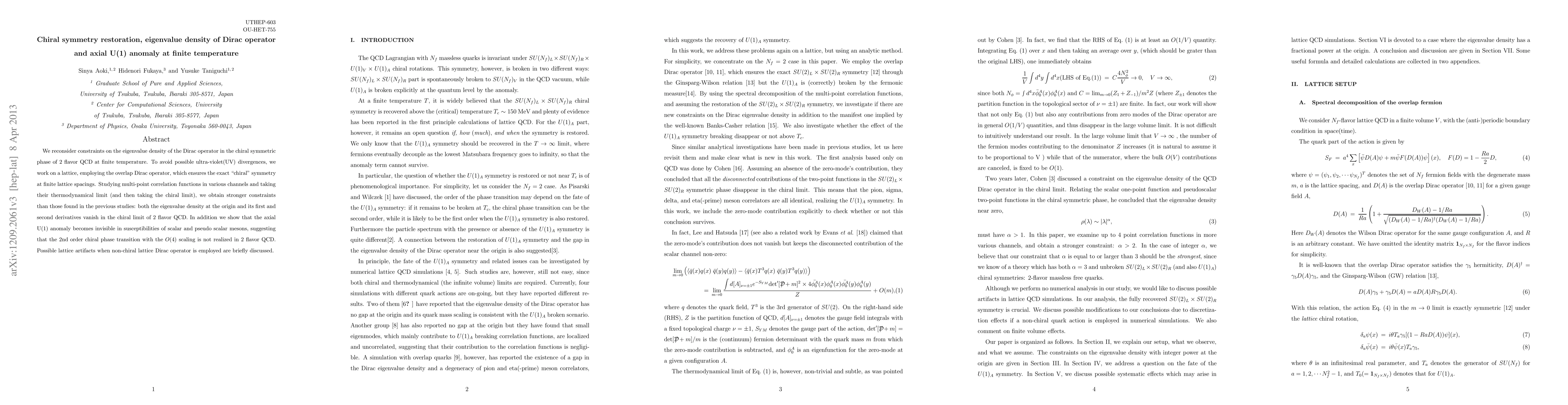 We reconsider constraints on the eigenvalue density of the Dirac operator in the chiral symmetric phase of 2 flavor QCD at finite temperature. To avoid possible ultra-violet(UV) divergences, we work on a lattice, employing the overlap Dirac operator, which ensures the exact "chiral" symmetry at finite lattice spacings. Studying multi-point correlation functions in various channels and taking their thermodynamical limit (and then taking the chiral limit), we obtain stronger constraints than those found in the previous studies: both the eigenvalue density at the origin and its first and second derivatives vanish in the chiral limit of 2 flavor QCD. In addition we show that the axial U(1) anomaly becomes invisible in susceptibilities of scalar and pseudo scalar mesons, suggesting that the 2nd order chiral phase transition with the O(4) scaling is not realized in 2 flavor QCD. Possible lattice artifacts when non-chiral lattice Dirac operator is employed are briefly discussed.