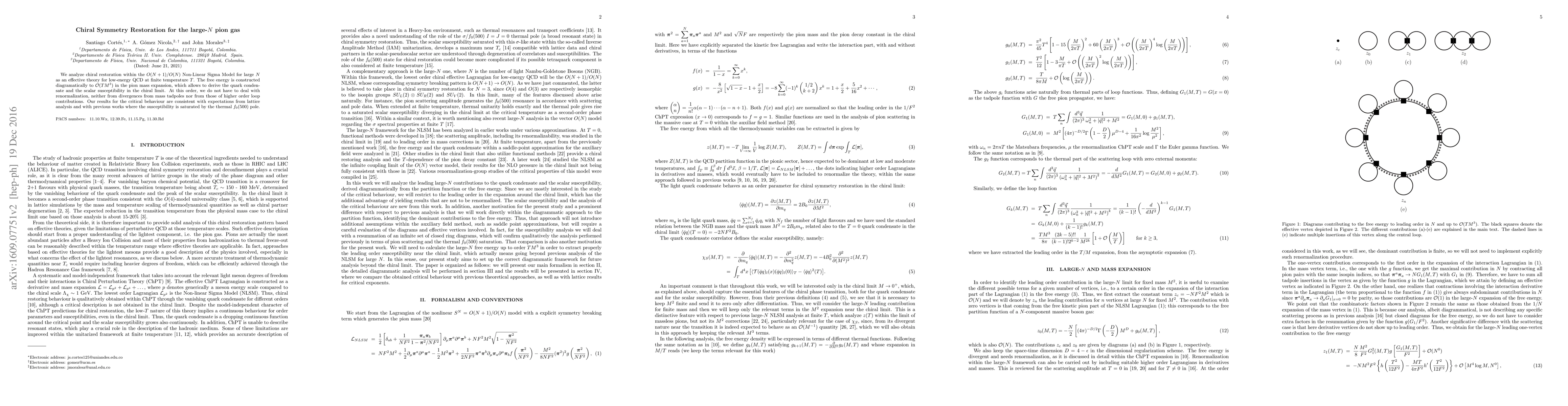 We analyze chiral restoration within the $O(N+1)/O(N)$ Non-Linear Sigma Model for large $N$ as an effective theory for low-energy QCD at finite temperature $T$. The free energy is constructed diagramatically to ${\cal O}(TM^3)$ in the pion mass expansion, which allows to derive the quark condensate and the scalar susceptibility in the chiral limit. At this order, we do not have to deal with renormalization, neither from divergences from mass tadpoles nor from those of higher order loop contributions. Our results for the critical behaviour are consistent with expectations from lattice analysis and with previous works where the susceptibility is saturated by the thermal $f_0(500)$ pole.