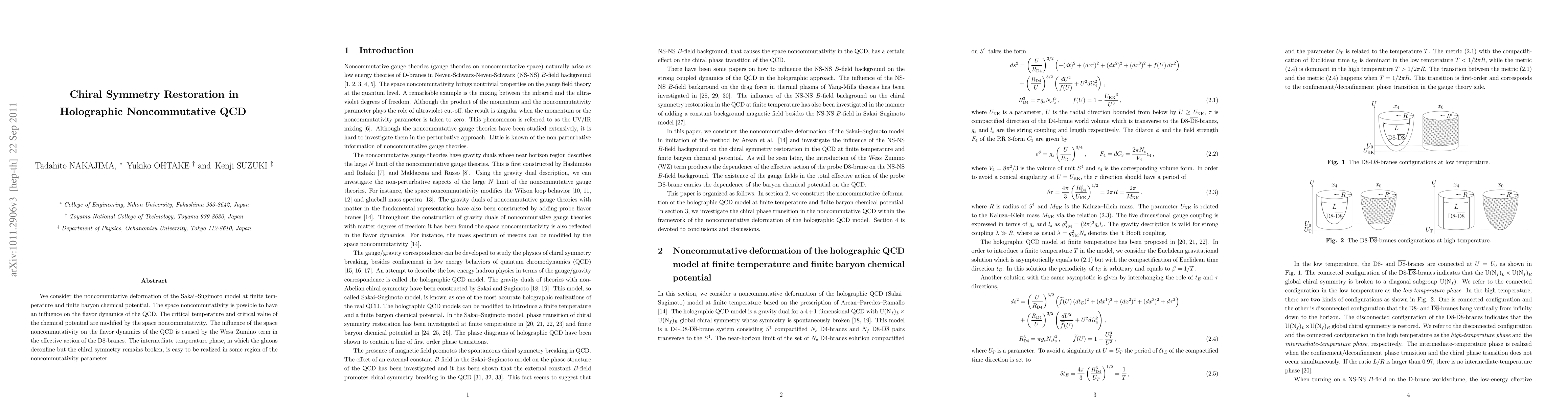We consider the noncommutative deformation of the Sakai--Sugimoto model at finite temperature and finite baryon chemical potential. The space noncommutativity is possible to have an influence on the flavor dynamics of the QCD. The critical temperature and critical value of the chemical potential are modified by the space noncommutativity. The influence of the space noncommutativity on the flavor dynamics of the QCD is caused by the Wess--Zumino term in the effective action of the D8-branes. The intermediate temperature phase, in which the gluons deconfine but the chiral symmetry remains broken, is easy to be realized in some region of the noncommutativity parameter.