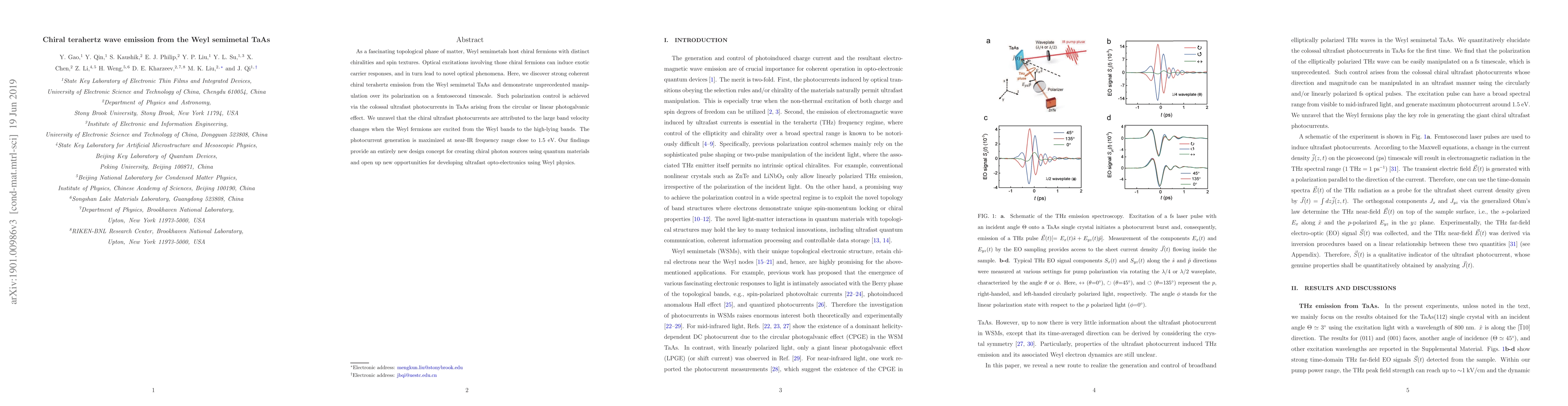 This study discovers strong chiral terahertz wave emission from Weyl semimetal TaAs, enabling unprecedented polarization control on femtosecond timescales via colossal ultrafast photocurrents due to circular or linear photogalvanic effects. These effects stem from large band velocity changes in Weyl fermions, presenting a new approach for creating chiral photon sources and advancing ultrafast opto-electronics.