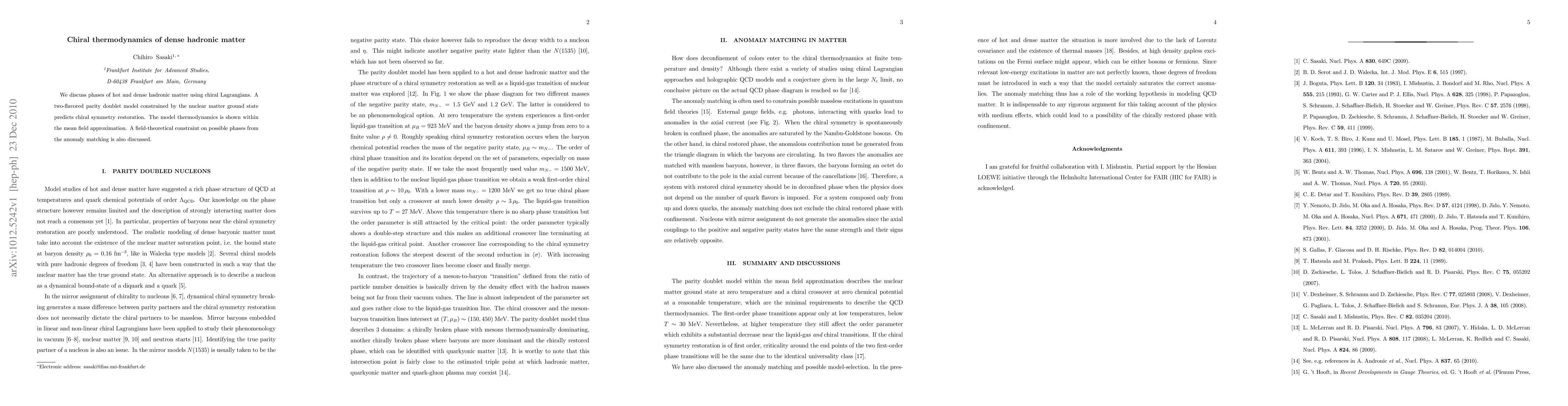 The paper introduces a parity doublet model that constrains the hadronic matter phases using chiral Lagrangians and anomaly matching, providing a field-theoretical framework for understanding chiral thermodynamics at finite temperature and density.