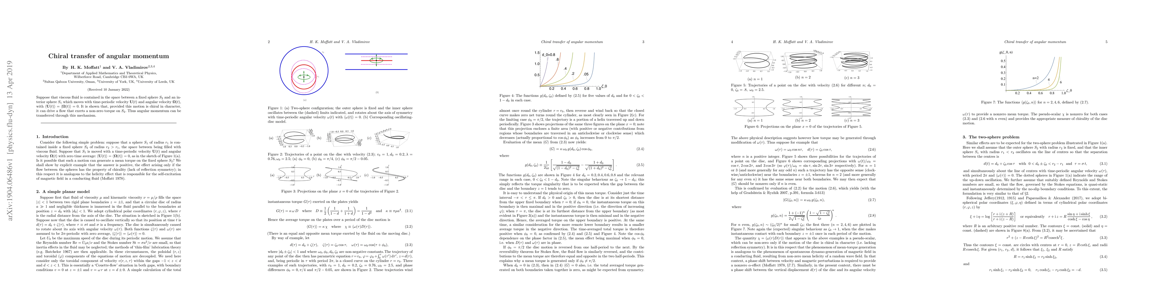 Suppose that viscous fluid is contained in the space between a fixed sphere $S_2$ and an interior sphere $S_1$ which moves with time-periodic velocity ${\bf U}(t)$ and angular velocity ${\bf \Omega}(t)$, with $ \left<{\bf U}(t)\right> = \left<{\bf \Omega}(t)\right> = 0$. It is shown that, provided this motion is chiral in character, it can drive a flow that exerts a non-zero torque on $S_2$. Thus angular momentum can be transferred through this mechanism.