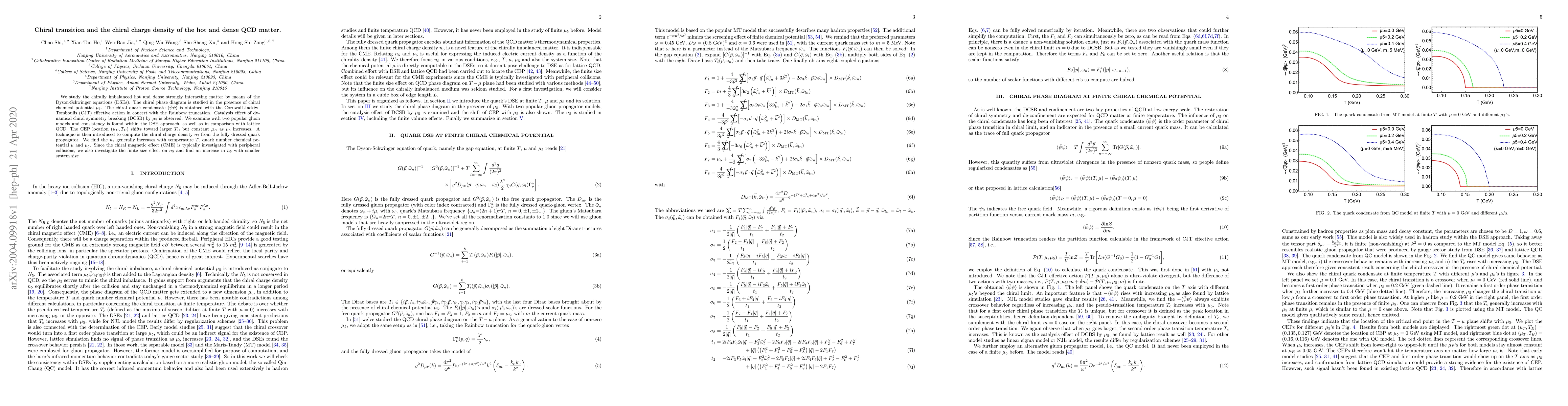 This paper investigates the chiral phase transition and chiral charge density in hot and dense QCD matter using Dyson-Schwinger equations and the Cornwall-Jackiw-Tomboulis effective action. It finds that the critical endpoint shifts with increasing chiral chemical potential and that the chiral charge density increases with temperature, chemical potential, and chiral chemical potential, with further increases observed in smaller systems.