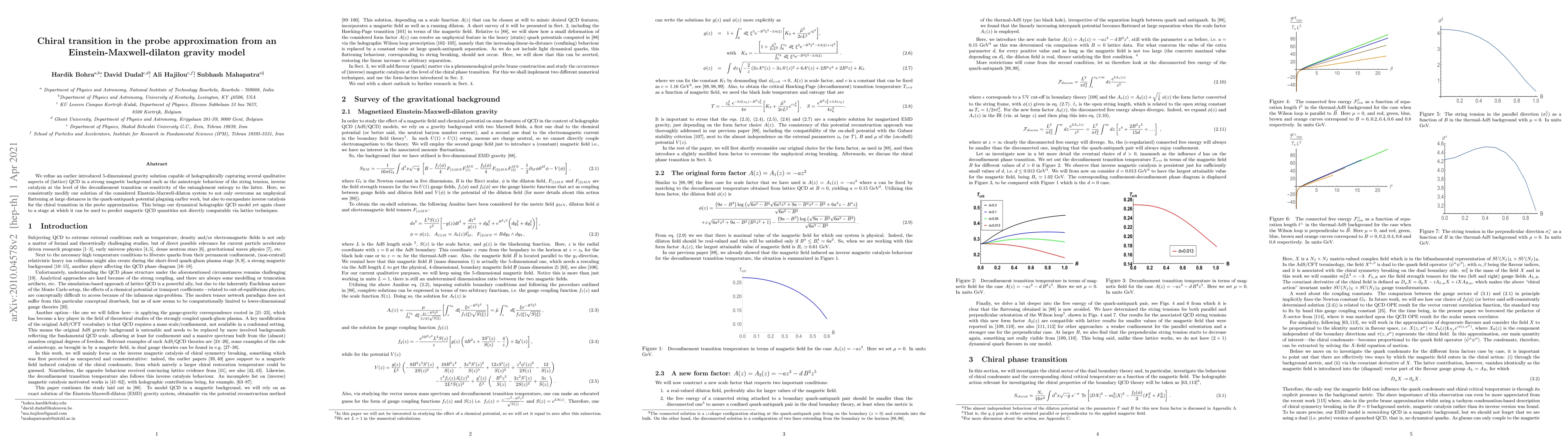 We refine an earlier introduced 5-dimensional gravity solution capable of holographically capturing several qualitative aspects of (lattice) QCD in a strong magnetic background such as the anisotropic behaviour of the string tension, inverse catalysis at the level of the deconfinement transition or sensitivity of the entanglement entropy to the latter. Here, we consistently modify our solution of the considered Einstein-Maxwell-dilaton system to not only overcome an unphysical flattening at large distances in the quark-antiquark potential plaguing earlier work, but also to encapsulate inverse catalysis for the chiral transition in the probe approximation. This brings our dynamical holographic QCD model yet again closer to a stage at which it can be used to predict magnetic QCD quantities not directly computable via lattice techniques.