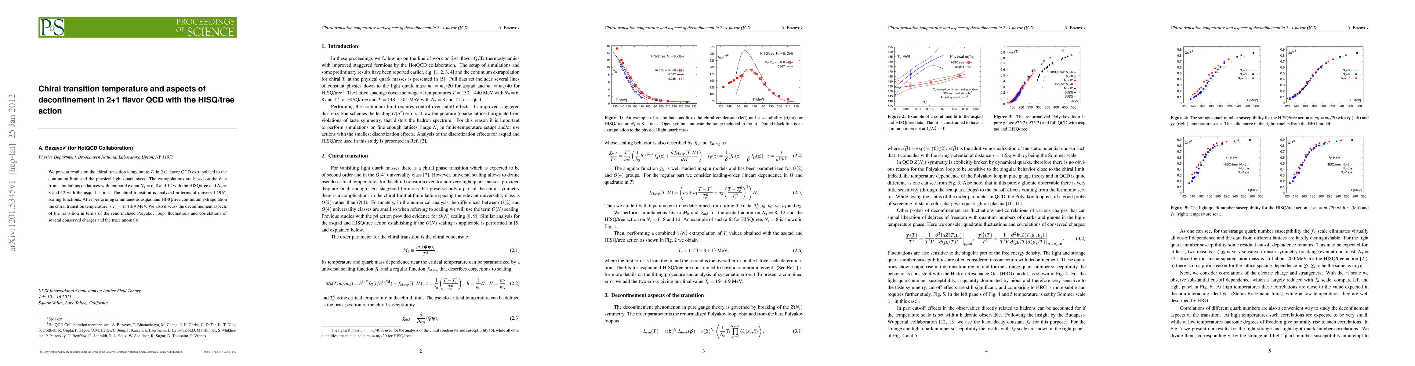 This study determines the chiral transition temperature Tc in 2+1 flavor QCD using HISQ/tree and asqtad actions, finding Tc=154 +/- 9 MeV. It also examines the deconfinement aspects through the renormalized Polyakov loop and conserved charge correlations.
