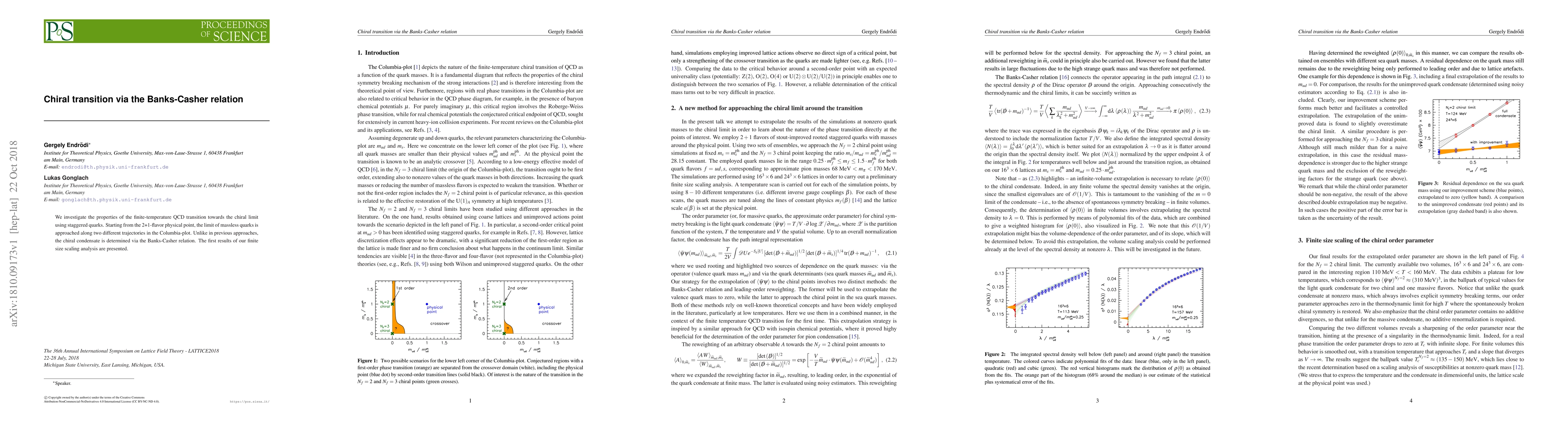 We investigate the properties of the finite-temperature QCD transition towards the chiral limit using staggered quarks. Starting from the 2+1-flavor physical point, the limit of massless quarks is approached along two different trajectories in the Columbia-plot. Unlike in previous approaches, the chiral condensate is determined via the Banks-Casher relation. The first results of our finite size scaling analysis are presented.