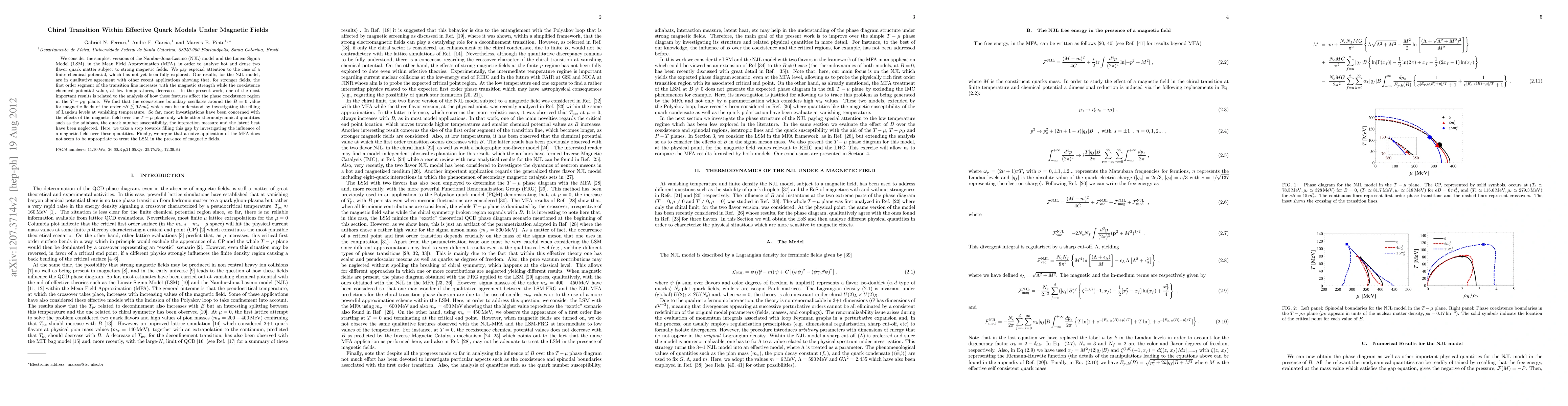 This paper investigates chiral transitions in the Nambu-Jona-Lasinio (NJL) and Linear Sigma Model (LSM) under strong magnetic fields, finding that the transition line's first-order segment increases with magnetic strength. It also examines the phase coexistence region in the $T-\rho_B$ plane, revealing oscillations due to Landau level filling effects.