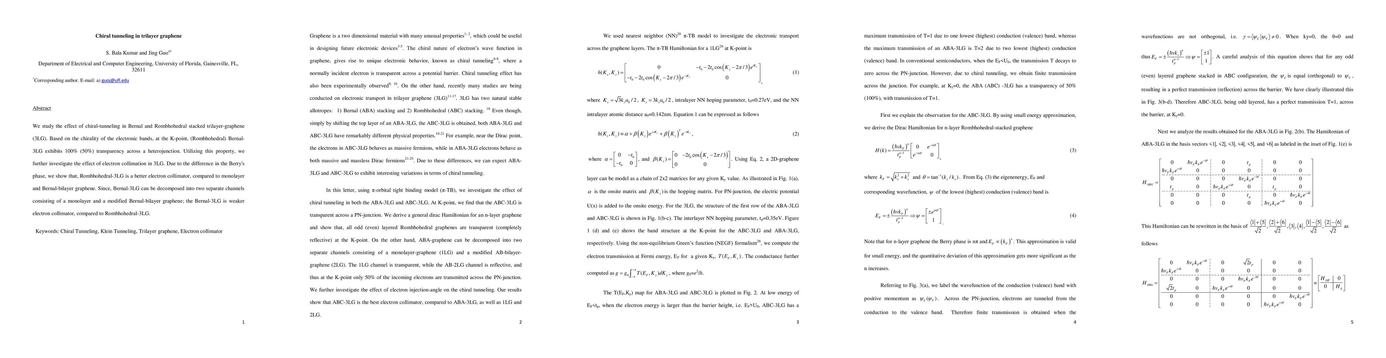 Summary: The research investigates chiral tunneling effects in trilayer graphene configurations, finding that Rombhohedral-stacked 3LG shows superior electron collimation due to its unique electronic band chirality, while Bernal-stacked 3LG, though composed of a monolayer and modified Bernal bilayer, is a weaker collimator.