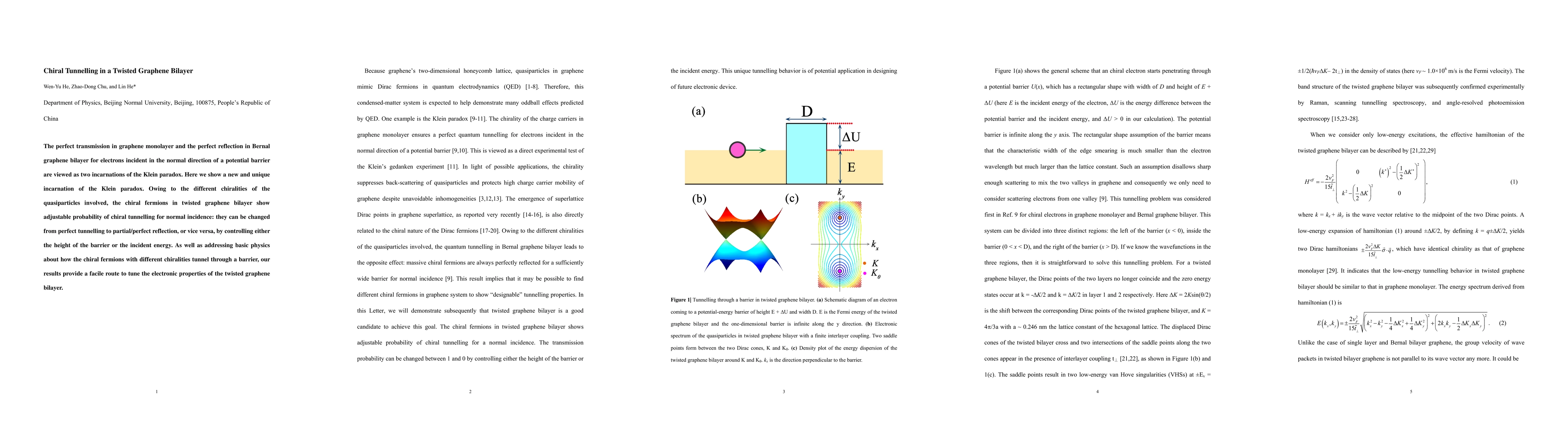 This paper explores chiral tunnelling in twisted graphene bilayers, demonstrating how the probability of chiral fermions tunnelling through a potential barrier can be adjusted from perfect tunnelling to reflection by manipulating the barrier's height or the incident energy, providing a method to control the electronic properties of such bilayers.