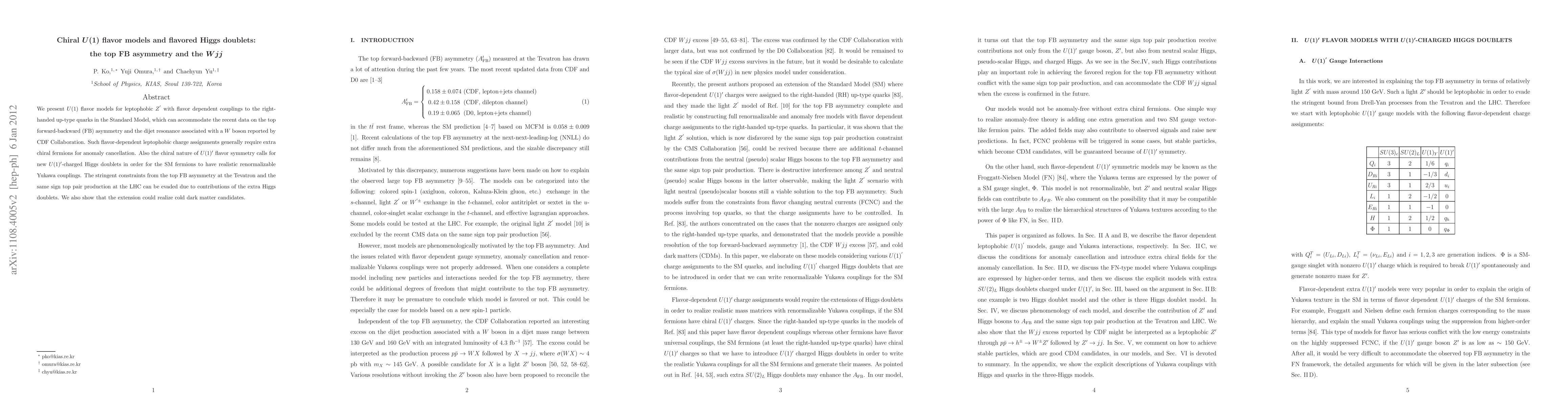 This paper proposes U(1) flavor models featuring leptophobic Z' bosons with flavor-dependent couplings to right-handed up-type quarks, explaining recent data on the top forward-backward asymmetry and a W boson dijet resonance. It introduces chiral fermions and flavored Higgs doublets to maintain anomaly cancellation and realistic Yukawa couplings, while evading stringent constraints from top FB asymmetry and LHC data.
