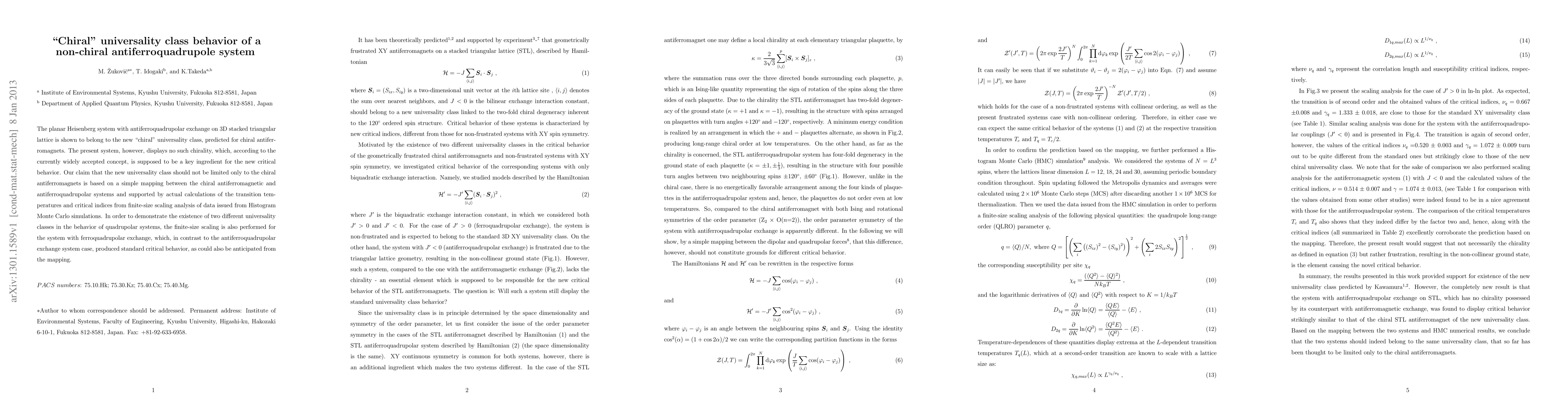 Researchers show that a non-chiral antiferroquadrupole system exhibits chiral universality class behavior, challenging current understanding of this phenomenon.