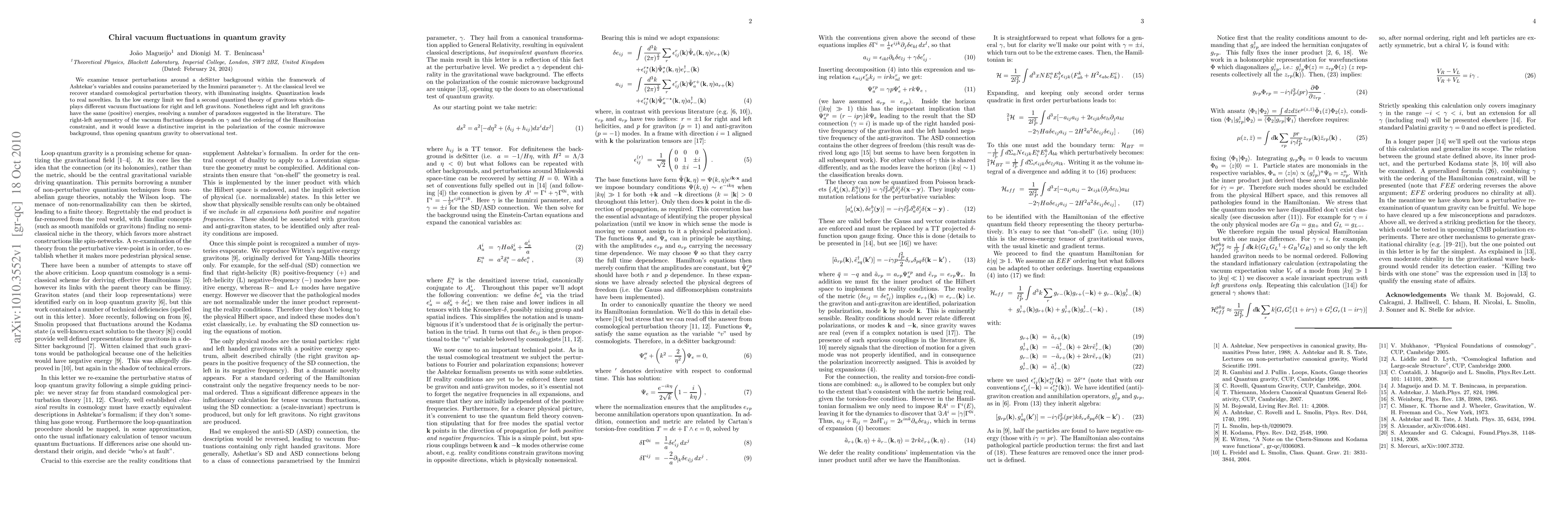 This paper explores tensor perturbations in deSitter space using Ashtekar's variables, revealing chiral vacuum fluctuations in gravitons that differ for right and left polarizations, yet maintain equal positive energies. The asymmetry depends on the Immirzi parameter and Hamiltonian constraint ordering, potentially impacting the cosmic microwave background polarization and offering a testable prediction for quantum gravity.