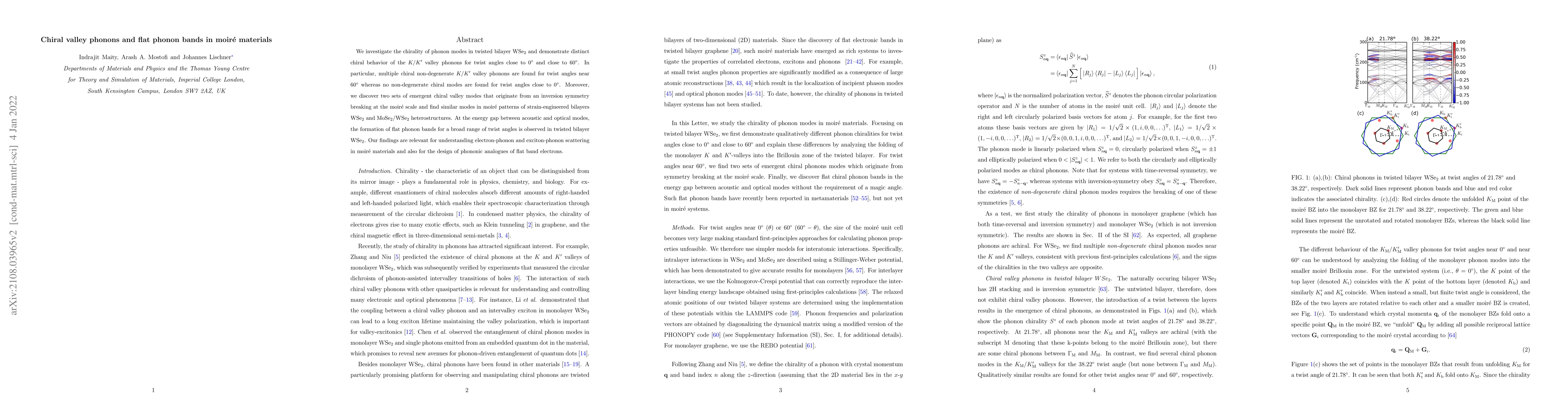 This study reveals chiral phonon modes in twisted bilayer WSe2, identifying distinct behaviors for $K/K^\prime$ valley phonons at different twist angles, and observes the formation of flat phonon bands across a broad range of angles, with implications for phonon interactions and material design.