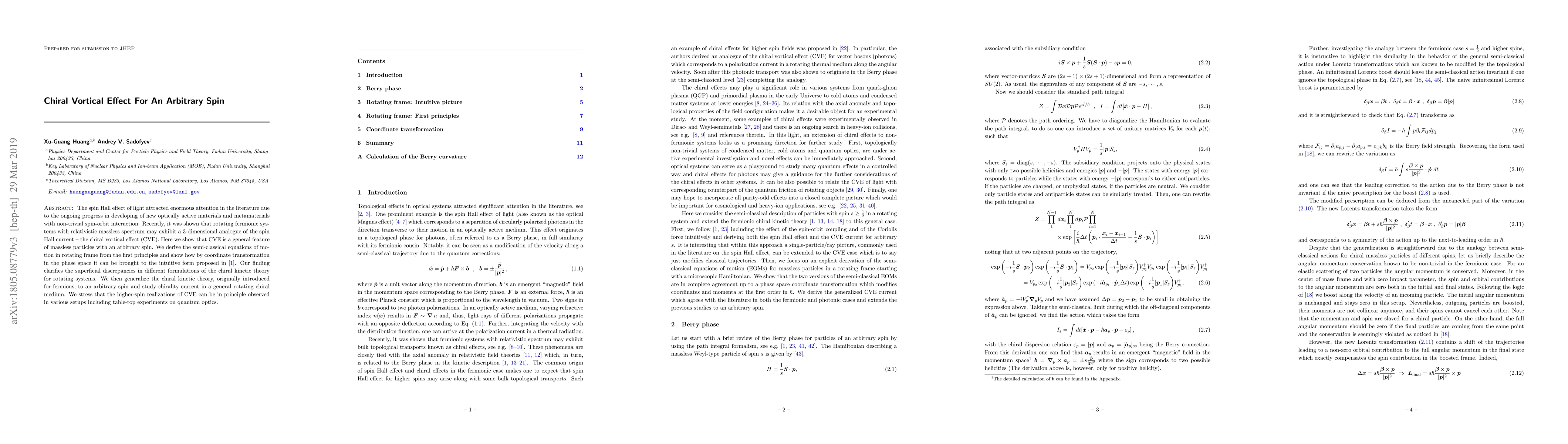 The spin Hall effect of light attracted enormous attention in the literature due to the ongoing progress in developing of new optically active materials and metamaterials with non-trivial spin-orbit interaction. Recently, it was shown that rotating fermionic systems with relativistic massless spectrum may exhibit a 3d analogue of the spin Hall current -- the chiral vortical effect (CVE). Here we show that CVE is a general feature of massless particles with an arbitrary spin. We derive the semi-classical equations of motion in rotating frame from the first principles and show how by coordinate transformation in the phase space it can be brought to the intuitive form proposed in [1]. Our finding clarifies the superficial discrepancies in different formulations of the chiral kinetic theory for rotating systems. We then generalize the chiral kinetic theory, originally introduced for fermions, to an arbitrary spin and study chirality current in a general rotating chiral medium. We stress that the higher-spin realizations of CVE can be in principle observed in various setups including table-top experiments on quantum optics.