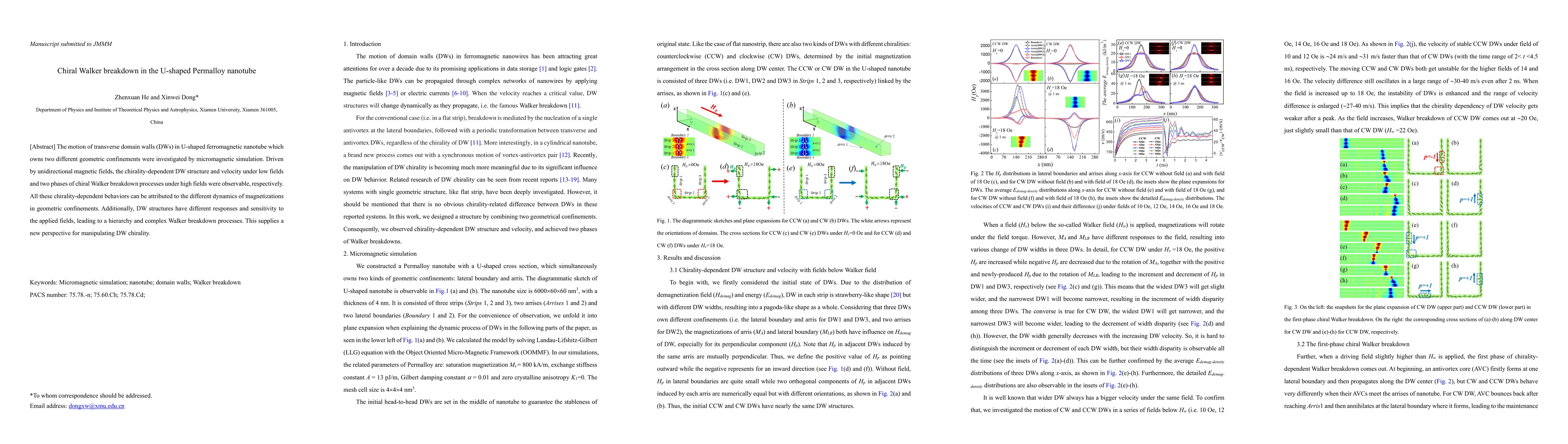 Micromagnetic simulations reveal chirality-dependent dynamics of transverse domain walls in U-shaped Permalloy nanotubes, showing distinct Walker breakdown phases under low and high magnetic fields, thus offering new insights into domain wall chirality manipulation.
