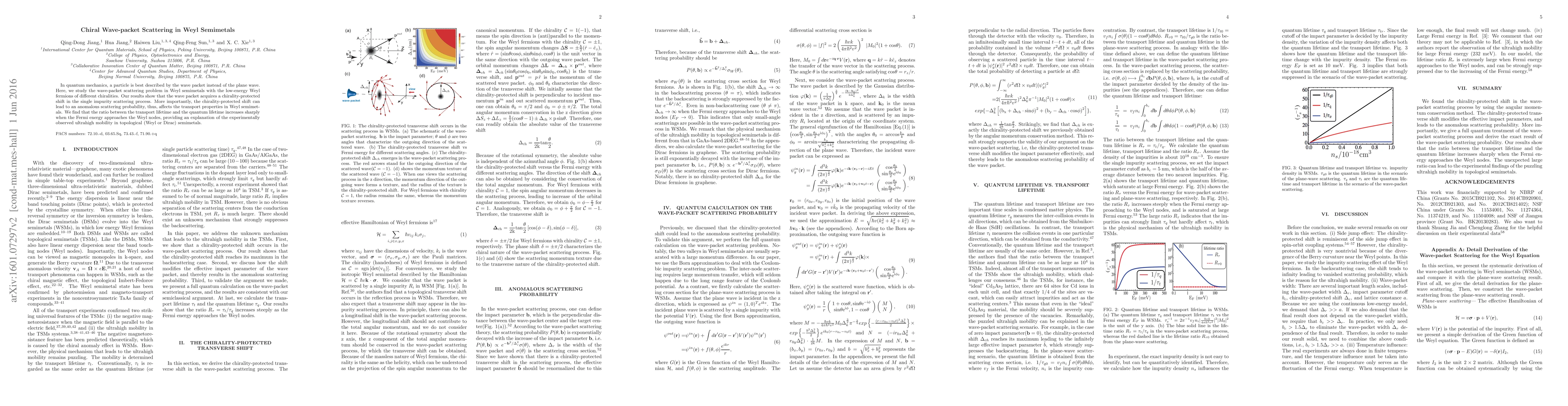 This paper investigates wave-packet scattering in Weyl semimetals, revealing a chirality-protected shift in scattering processes. The study concludes that this shift leads to anomalous scattering probabilities and significantly impacts transport properties, explaining the high mobility observed in these materials near Weyl nodes.