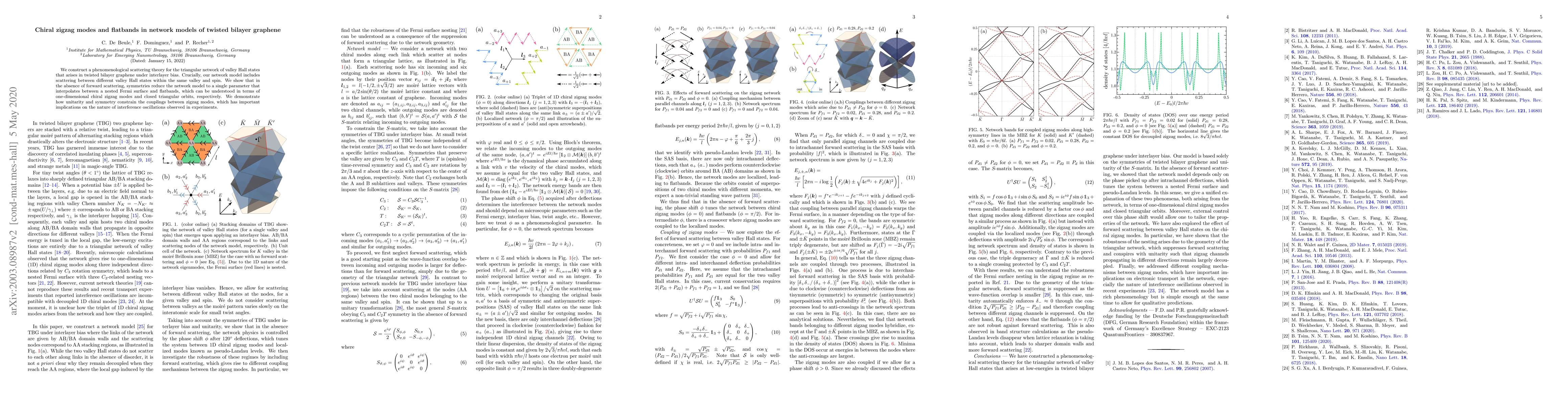 We construct a phenomenological scattering theory for the triangular network of valley Hall states that arises in twisted bilayer graphene under interlayer bias. Crucially, our network model includes scattering between different valley Hall states within the same valley and spin. We show that in the absence of forward scattering, symmetries reduce the network model to a single parameter that interpolates between a nested Fermi surface and flatbands, which can be understood in terms of one-dimensional chiral zigzag modes and closed triangular orbits, respectively. We demonstrate how unitarity and symmetry constrain the couplings between zigzag modes, which has important implications on the nature of interference oscillations observed in experiments.